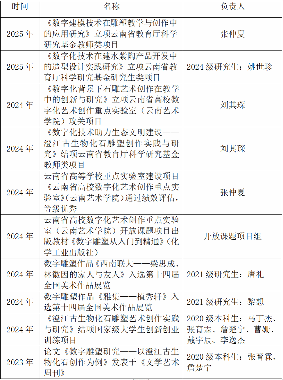 雕塑专业建于1959年,是云南省开设最早、最为完善的雕塑教育、创作、人才培养的传统专业,2020年获批为国家级一流本科专业建设点,在云南省本科专业综合评价中,连续五年排名第一。近三年在教学中多措并举扎实推进国家一流专业建设点建设,教学质量稳步提升。一、与时俱进,更新人培与教学大纲,设置与社会需求相关的专业课程,适应社会对创新型人才需求。雕塑专业2023版大纲中设置的专业课程中,《泥塑》《数字造型》《公共艺术》《...