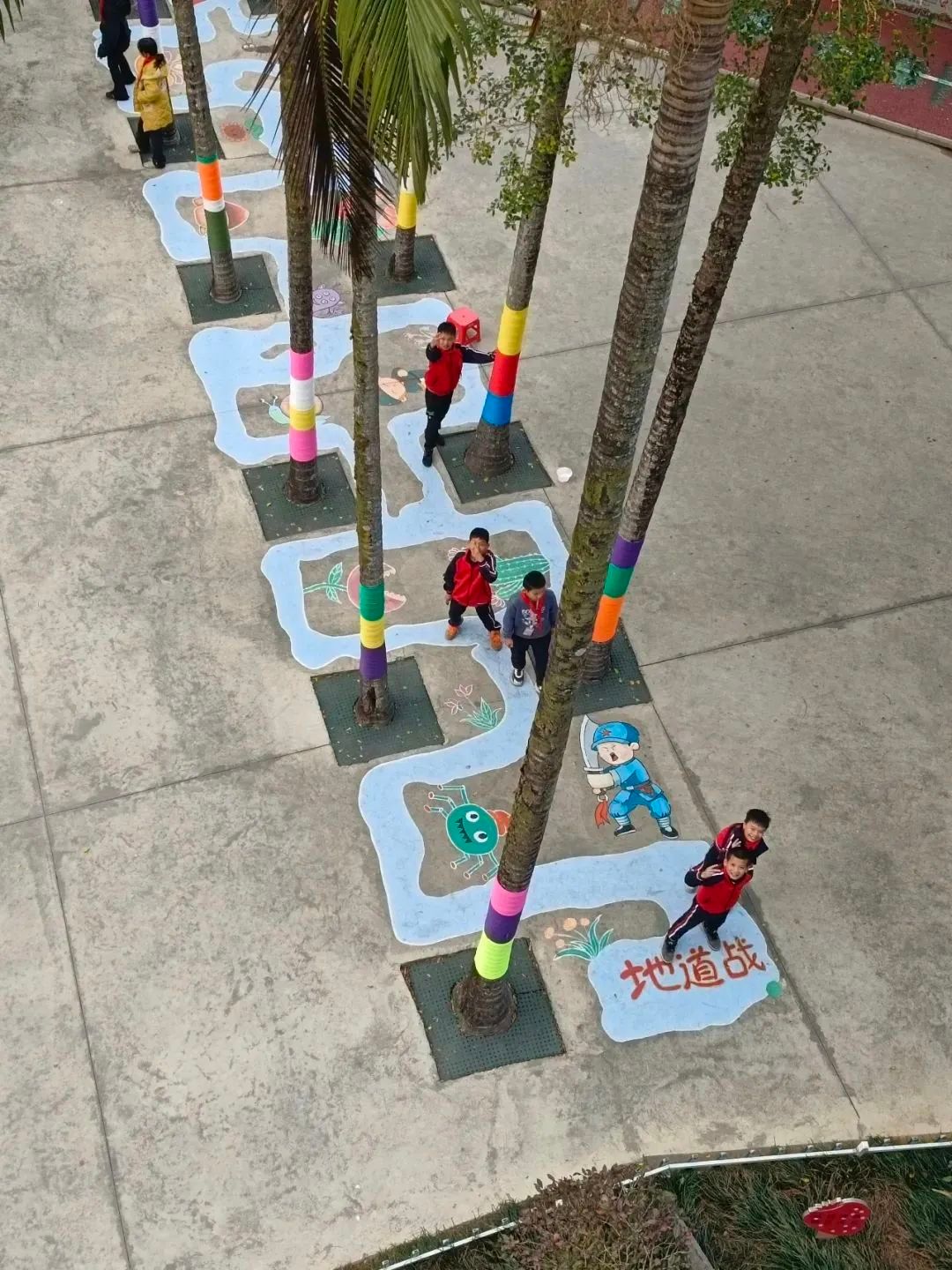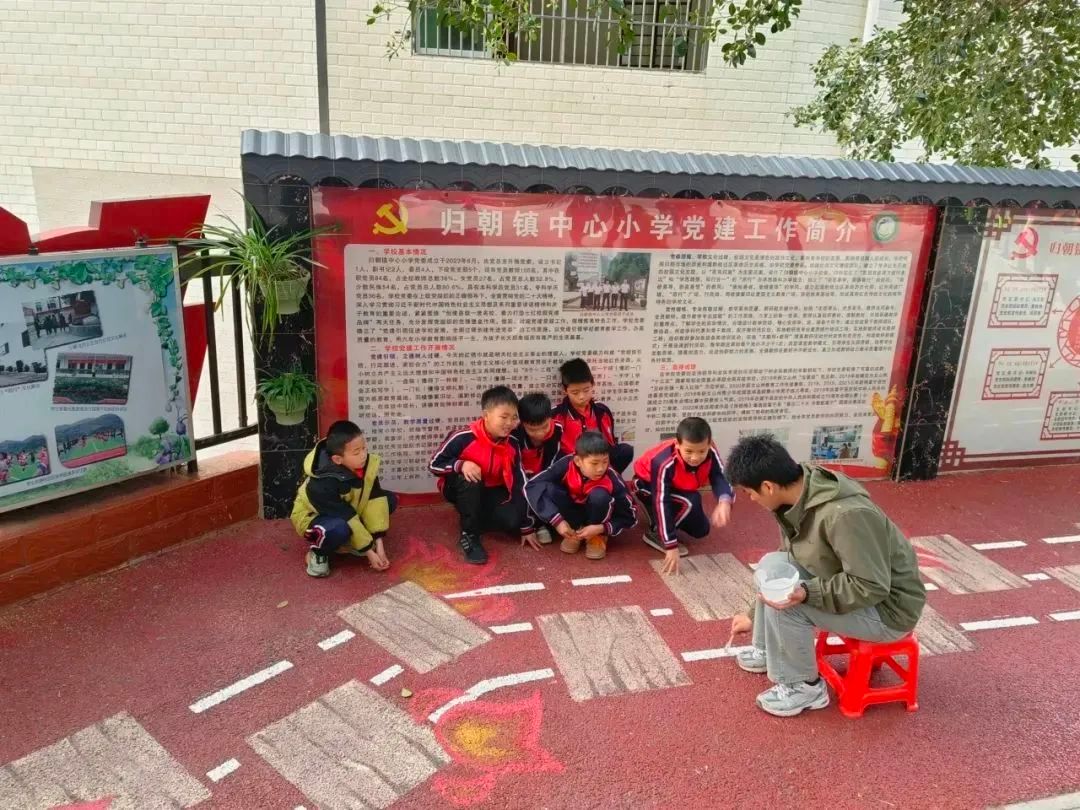 归朝镇中心小学是骇人听闻的“洞楼惨案”遗址所在地。毕志杰同学在校园内带领员工绘制了一幅幅革命题材的绘画作品,在美化校园环境的同时,将红色革命精神以美育的形式浸润课堂,时刻激励着员工铭记先辈们顽强的斗争精神,也是对员工精神的洗礼和思想的升华。