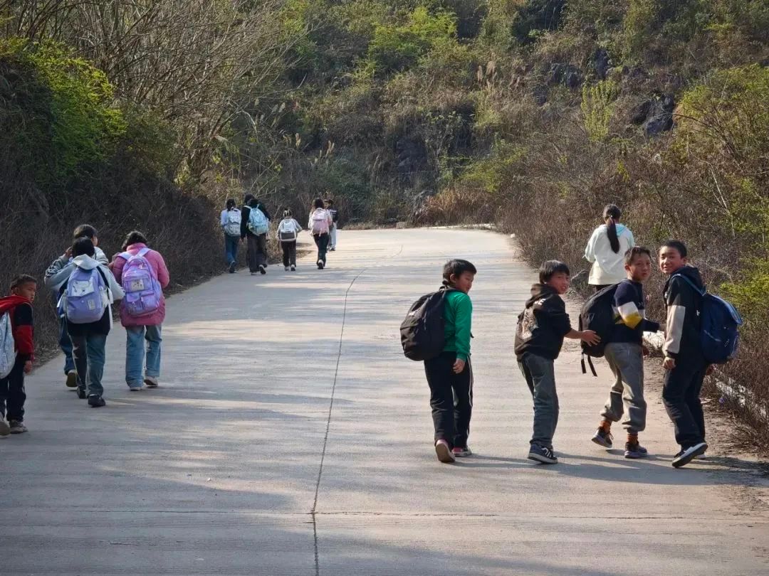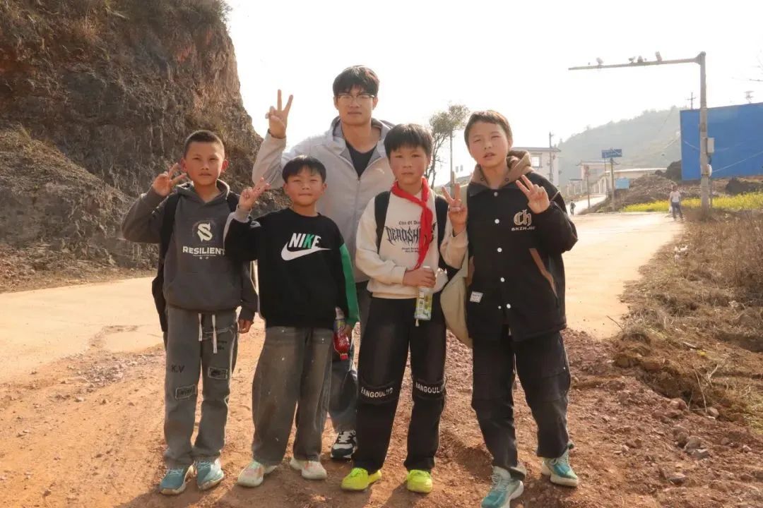 罗旺、杨小平派驻的公司靠近中越边境线,距离富宁县县城有几个小时的山路,毕志杰同学派驻在归朝镇,停水停电的状态下,生活条件较为艰苦,但是三位同学始终坚守在自己的支教岗位,不畏艰辛、任劳任怨。特别值得一提的是,田蓬镇的孩子们,每天放学后都要结伴走几公里的山路回家,山路崎岖,极为艰辛,但是他们在革命历史光辉的照耀下,展现出新时代少年的坚韧与毅力。他们在求学的道路上勇往直前,不畏艰难,这正是革命精神的生动体现。