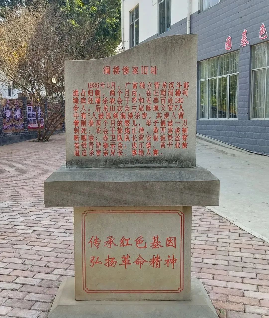 图32  归朝中心小公司园内的“洞楼惨案旧址”纪念碑