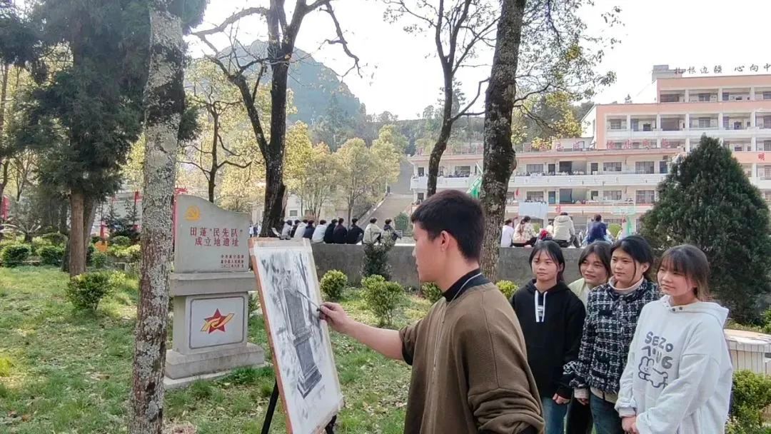杨小平同学带领员工描绘革命根据地,将田蓬镇“民先队”不畏不屈的革命精神贯彻到课堂中,将红色文化以美育的形式渗透在员工的生活和学习中,使员工在此过程中重温历史,激发了员工的意志,使红色基因得以一代代传承。