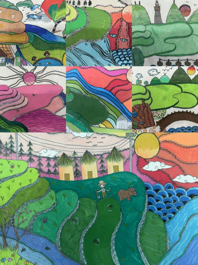 派驻在迤萨镇万年塘中心完小的王天优同学,带领员工们用画笔描绘家乡的梯田,将课堂延伸到大自然中,使员工在亲近自然、感受自然的同时增强了对家乡的认识和热爱家乡的情怀。