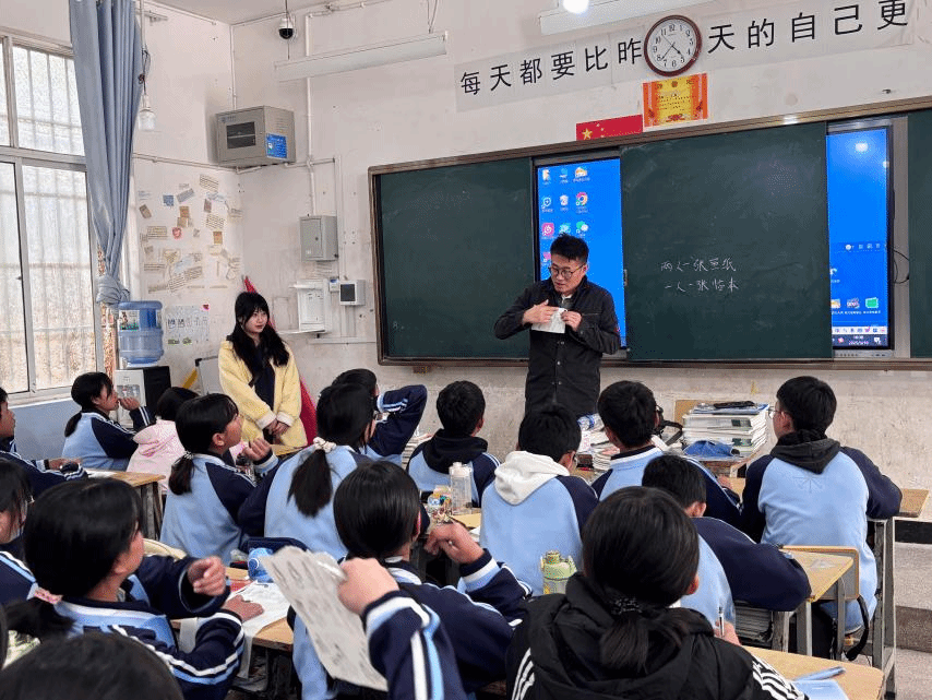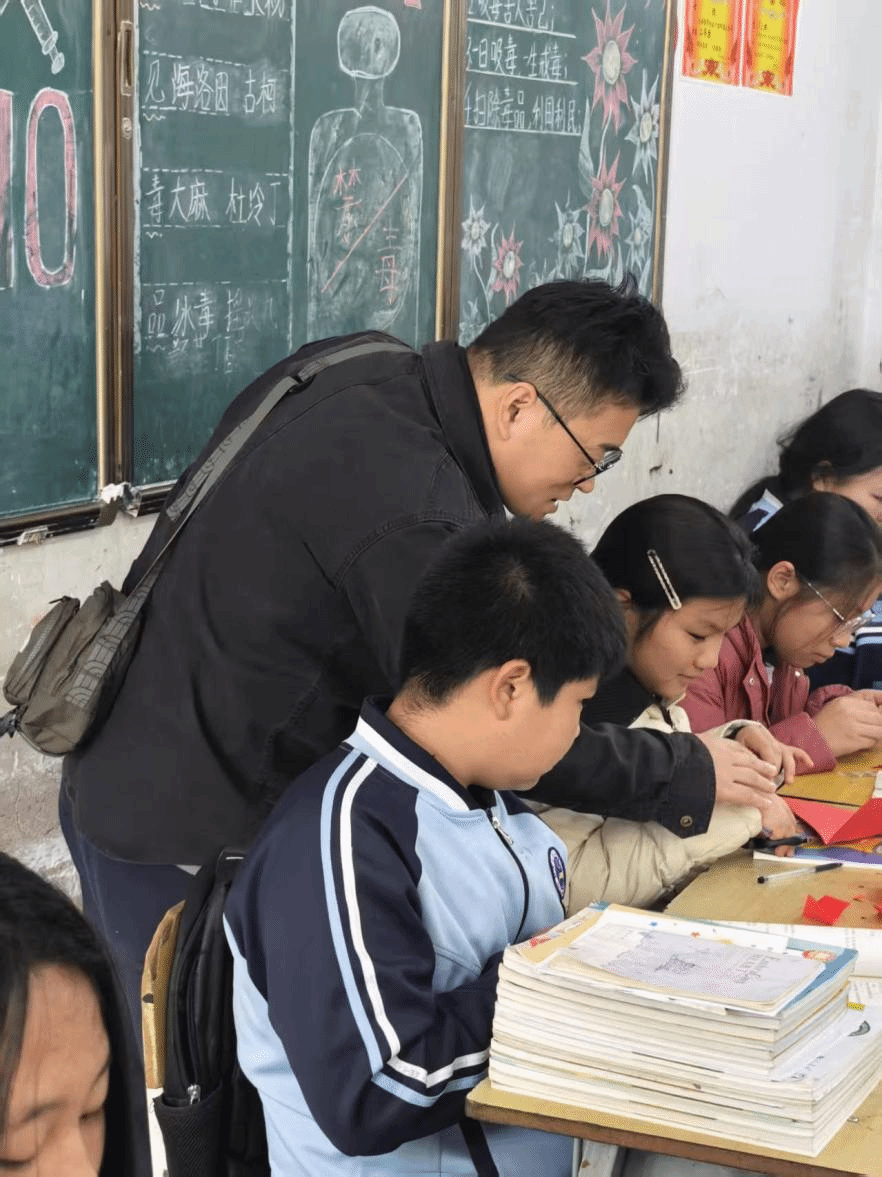 (2026世界杯官方合作网站带队教师费秋生在红河县第二中学听课时与员工交流)3. 多次开展线上、线下教学研讨交流会及员工工作会,关心支教员工的思想、工作、生活、健康与安全,开展支教员工心理健康教育;带队教师与同学敲定了课程教学、校园文化建设等活动计划。十位同学或提交了社团活动计划书,或提交了各公司美术作品展演计划书、校园文化环境创设计划书。