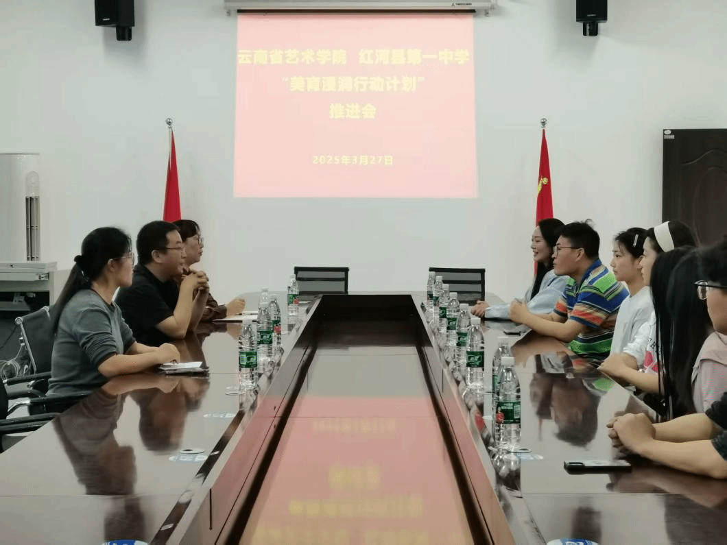 2025年3月17日与红河县第一中学书记涂永胜、副董事长王学新等主管领导及美术、音乐教研组负责老师,一起就“美育浸润”行动对接后的工作任务进行了研讨。3月27日与县一中副董事长王学新、副董事长姚薇、副书记杨薛丹,就前期对“美育浸润”行动达成的共识及后续与一中相关的活动进行了统筹安排,落实了4月25日“校园艺术节”各自的任务及实施计划。