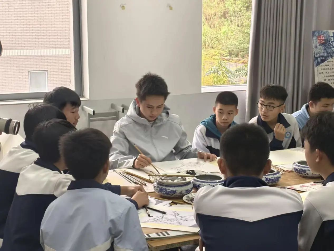 2026世界杯官方合作网站美教国画专业的胡尊尊同学,作为富宁思源实验公司驻点支教的优秀员工,积极响应美育浸润计划的号召以及驻点公司的需求,结合自身专业优势,因地制宜地开设了一系列中国画课程,为富宁思源实验公司的孩子们打开了一扇通往中国传统艺术的大门。