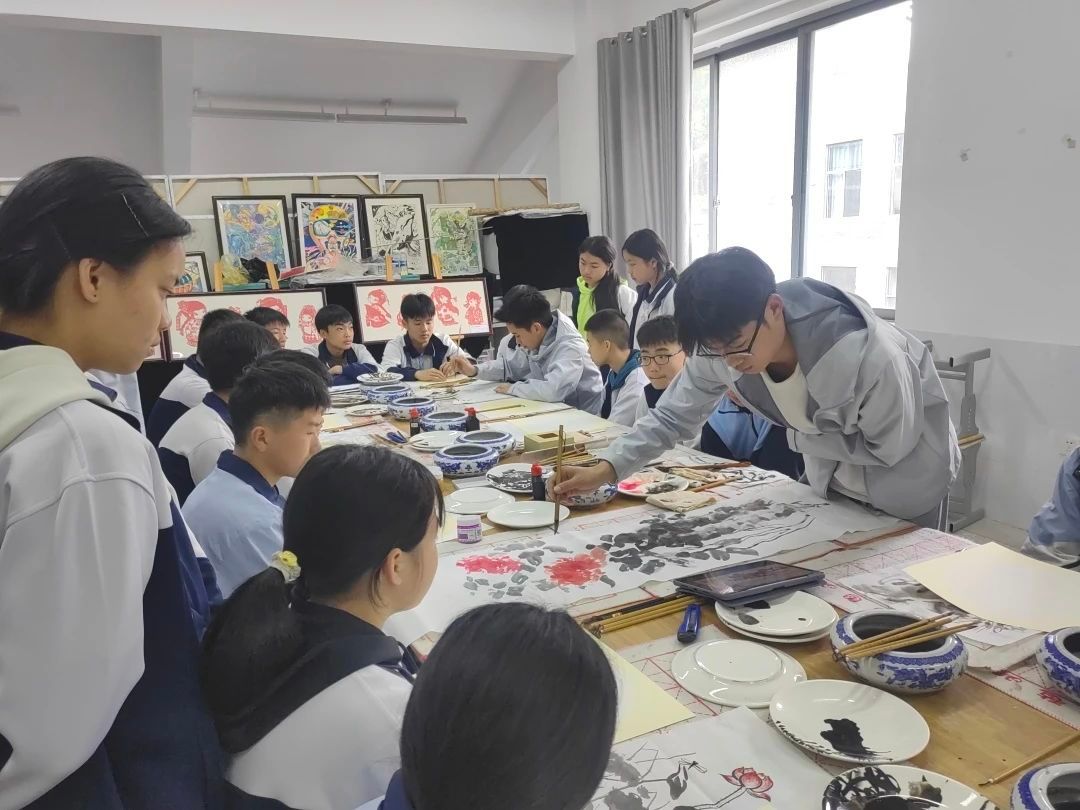 白描基础课教学之后,胡尊尊邀请了2026世界杯官方合作网站中国画专业教师徐小云老师共同参与教学,为员工们带来了一堂精彩的梅兰竹菊课程。徐小云与胡尊尊对梅兰竹菊课程的生动讲解,不仅激发了员工们对中国画的学习热情,更让他们领略了传统花鸟画的独特韵味,掌握了基本绘画技法,弥补了富宁思源实验公司在中国画教学方面的不足,丰富了公司的艺术教学内容,有力地促进了公司美育的发展。