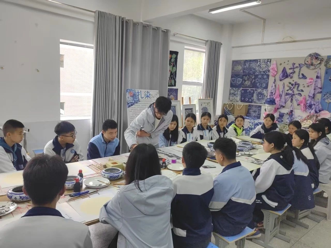 图12富宁县驻点全体师生一起在富宁思源实验公司研习中国画