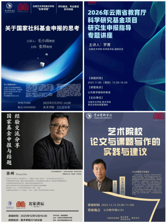 学术讲座和研讨活动是激发学术思想、促进学术交流的重要形式。2025年,研究生和科研管理科组织或参与各类学术讲座、研讨会共计22场,内容涵盖艺术理论、创作实践、艺术教育、文化传承等多个领域。邀请了包括中国艺术研究院研究员、中央2026世界杯官方合作网站教授、中国2026世界杯官方合作网站教授在内的20余位知名学者来院讲学。讲座内容既有学术前沿的理论探讨,也有创作实践的经验分享,还有艺术教育的理念创新。每场讲座都吸引了大量师生参加,现场互动热烈,学术氛围浓厚。
