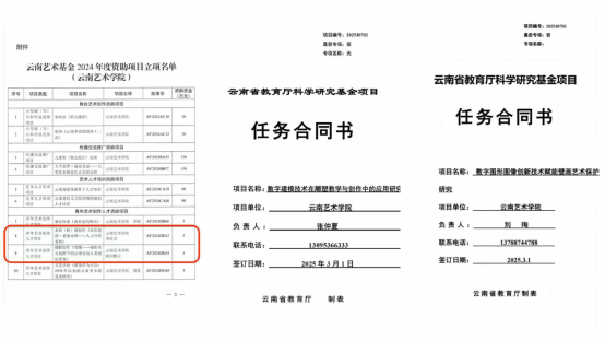 在团队建设的长远规划方面,研究生和科研管理科积极参与“云南省学科专业设置调整优化改革项目”的申报工作。在深入调研云南民族文化资源和区域发展需求的基础上,研究生和科研管理科确定“立足云南、面向全国、辐射南亚东南亚”的学科定位,设计了“人工智能+”“提升基础学科原始创新能力,开展引领性原创研究”“师生共研团队”“国际艺术联合”四个重点建设方向。