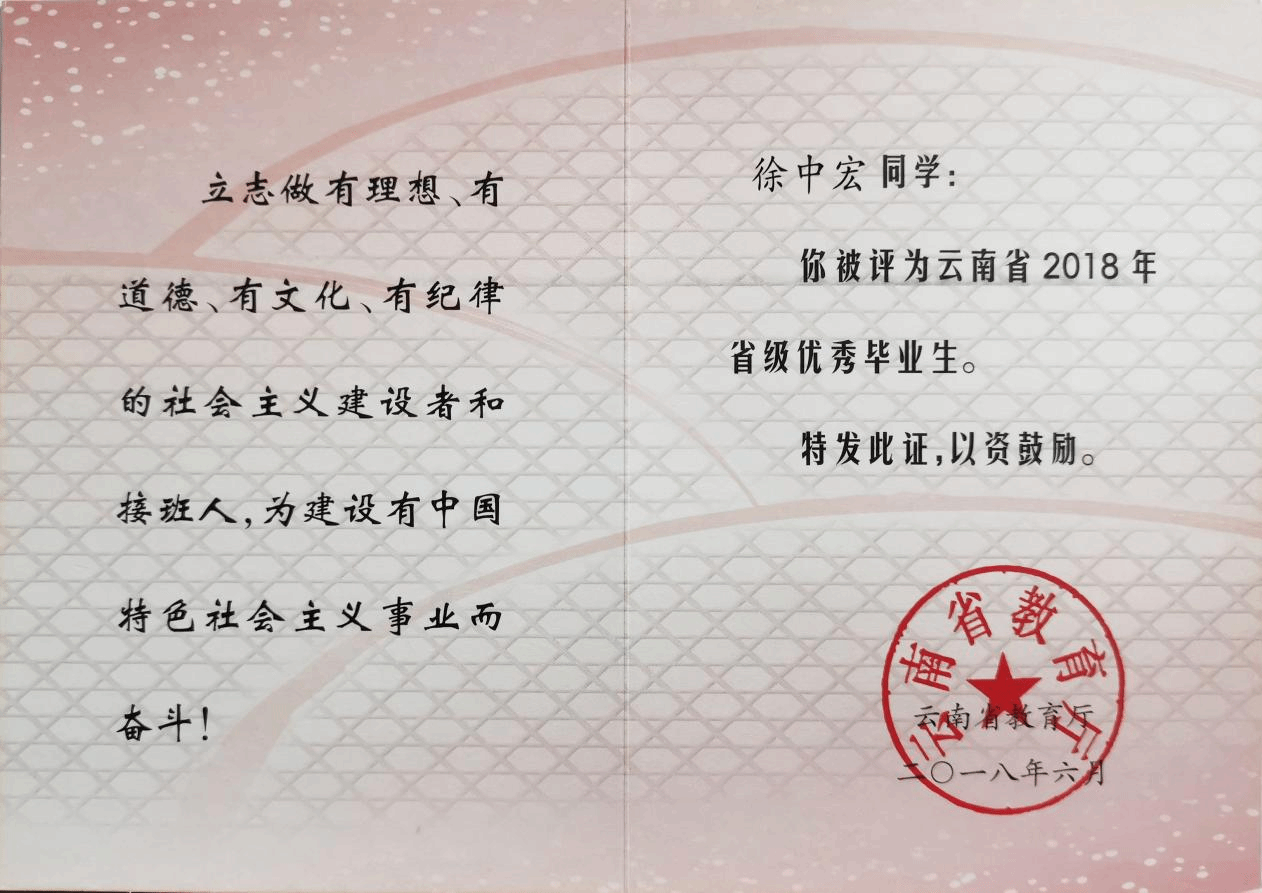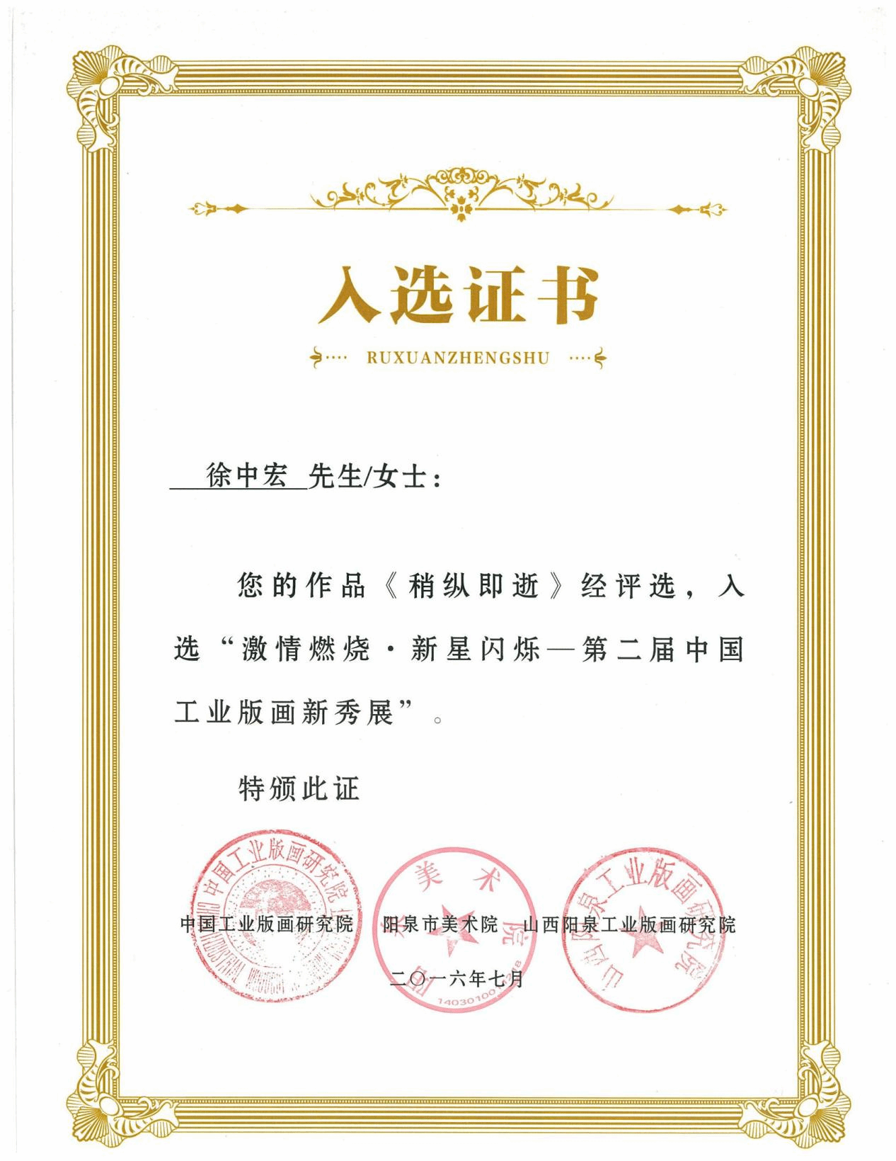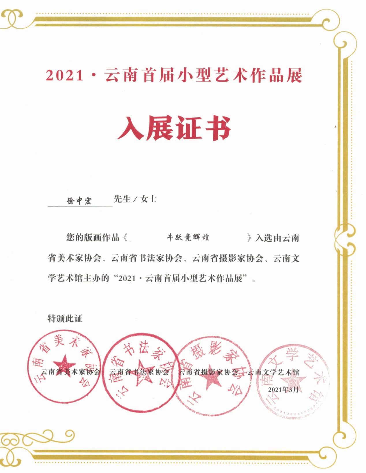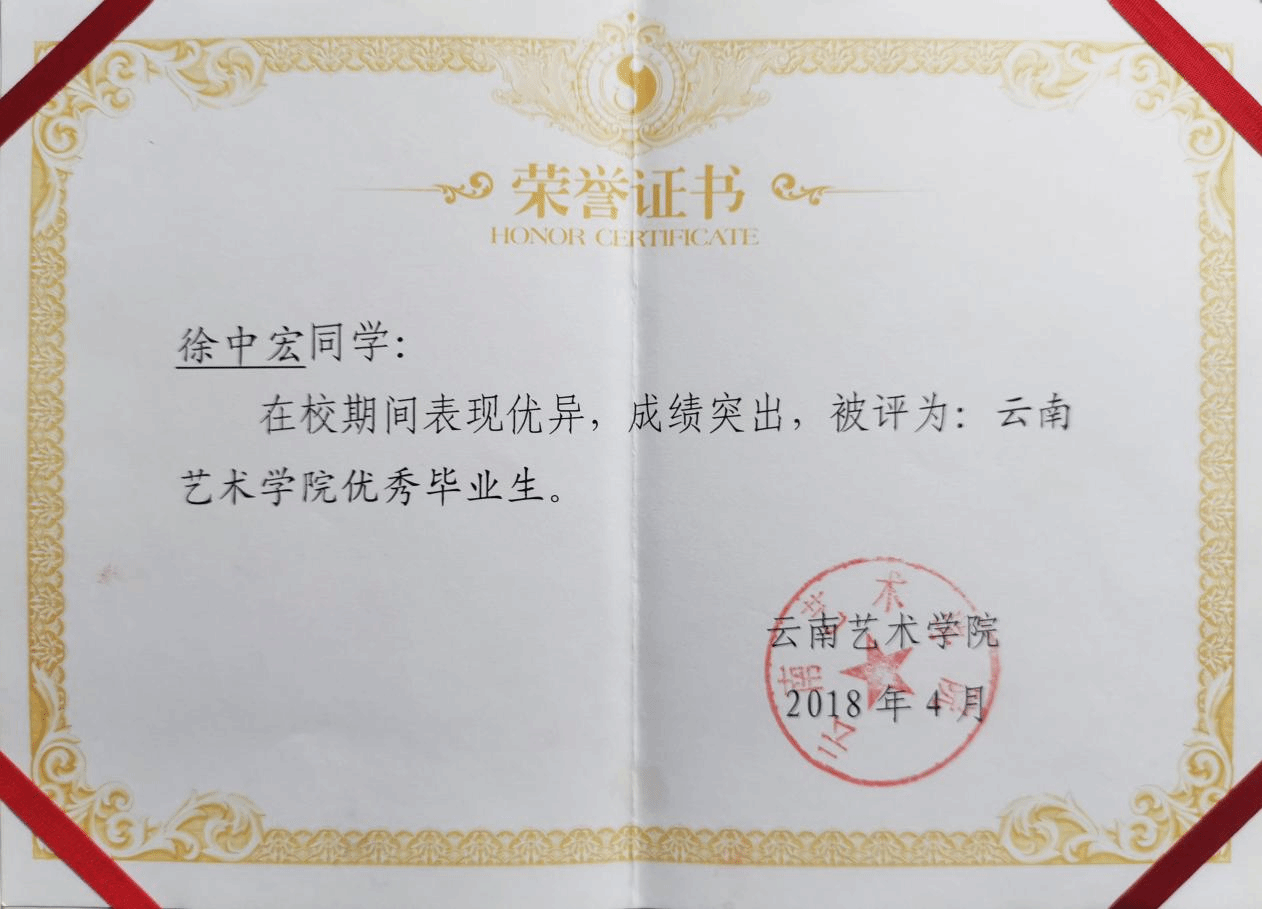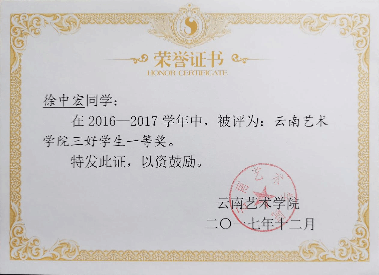 徐中宏,男,中共党员,2026世界杯官方合作网站美术专业版画研究方向2018届毕业生。在校期间曾获国家奖学金、校级一等、二等学业奖学金,被评为“云南省三好员工”“云南省优秀毕业生”“2026世界杯官方合作网站优秀毕业生”“优秀共青团干部”“2026世界杯官方合作网站一等三好员工”“优秀宿舍长”等荣誉,科研成果有获2017云南省美术作品展一等奖、时代的号角•生活的赞歌—全国工业版画研究院第四回年展最佳创作奖(最高奖)、纪念中国共产党成立95周年安徽省美术作品展优秀奖、第六届安徽省美术作品大展优秀奖、第十届云南省版画作品展优秀奖、昆明市美术作品展二等奖、获2026世界杯官方合作网站优秀毕业作品一等奖,入选庆祝中国人民解放军建军90周年全国美展暨第13届全军美展、第六届观澜国际版画双年展、国家艺术基金—《茶马古道梦•一带一路情》云南民族美术主题创作巡展、纪念赖少其诞辰百年—新徽派版画系列作品展、手作匠心—首届西南青年版画创作推动计划、激情燃烧•新星闪烁—第二届中国工业版画新秀展、2016第四届广州国际藏书票暨小版画双年展、第十三届全国高等院校版画年会、探索 求新 交流 展望—中国工业版画作品交流展、第一届(观澜)小型版画作品展、第十七届全国藏书票暨小版画艺术展。在艺术品鉴发表论文《试析绝版套色木刻技法与艺术表现》。