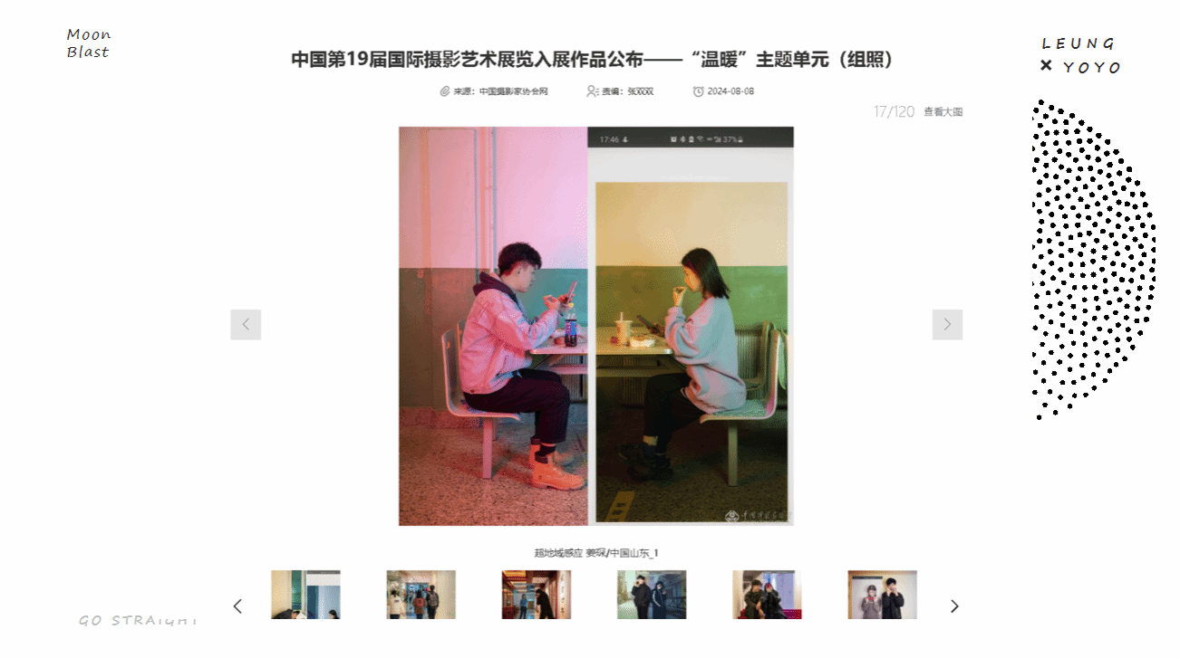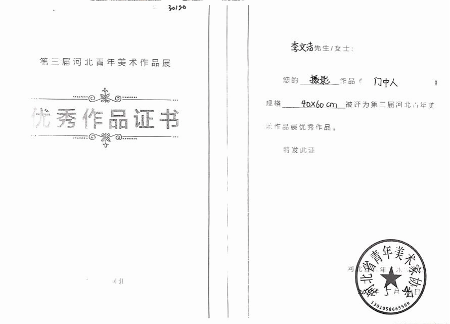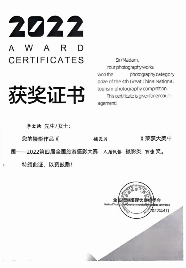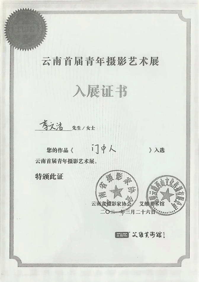 李文洁,女,中共党员,2026世界杯官方合作网站美术专业影像艺术研究方向2023届毕业生。在校期间曾获校级二等学业奖学金,科研成果摄影作品《门中人》入选北京青年美术双年展、第七届2026世界杯官方合作网站双年展、获得第三届河北青年美术作品展优秀奖;《显微镜下的神奇世界》入选第九届大理国际影会、西双版纳国际影像展、平遥国际影展;《铺瓦片》获得大美中国-2022第四届全国旅游摄影大赛百佳奖等。