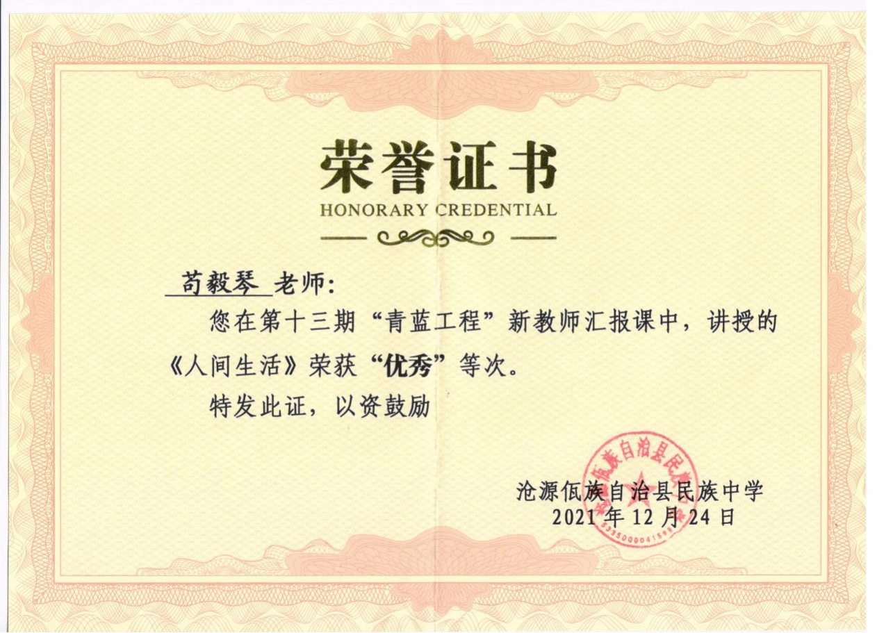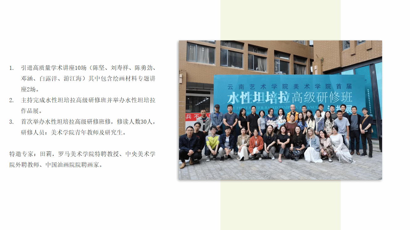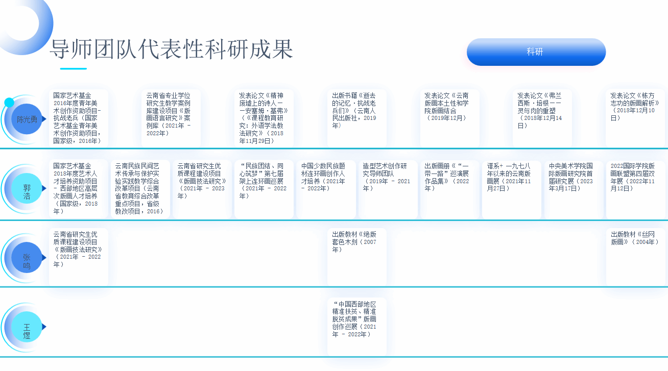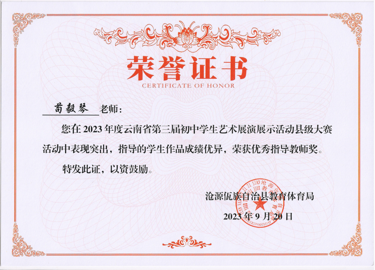 现为沧源佤族自治县民族中学高中美术教师,2022年作为课题组成员参与云南省哲学社会科学艺术科学规划一般项目《云南现代早期创作版画研究》,已结项;2024年作为课题负责人申请临沧市级课题《艺考改革背景下美术教育问题与对策研究》,已结题;2023年11月参加由楚雄师范公司承办的“楚雄师范公司浸润计划”——初中音体美骨干教师(初中美术)培训中表现突出,成绩优异,被评为“优秀学员”;2023年9月在云南省第三届初中员工艺术展演展示活动县级大赛活动中表现突出,指导的员工作品成绩优异,荣获优秀指导教师奖;2024年5月,被沧源佤族自治县教育体育局聘请担任县美术名师工作室主持人等。