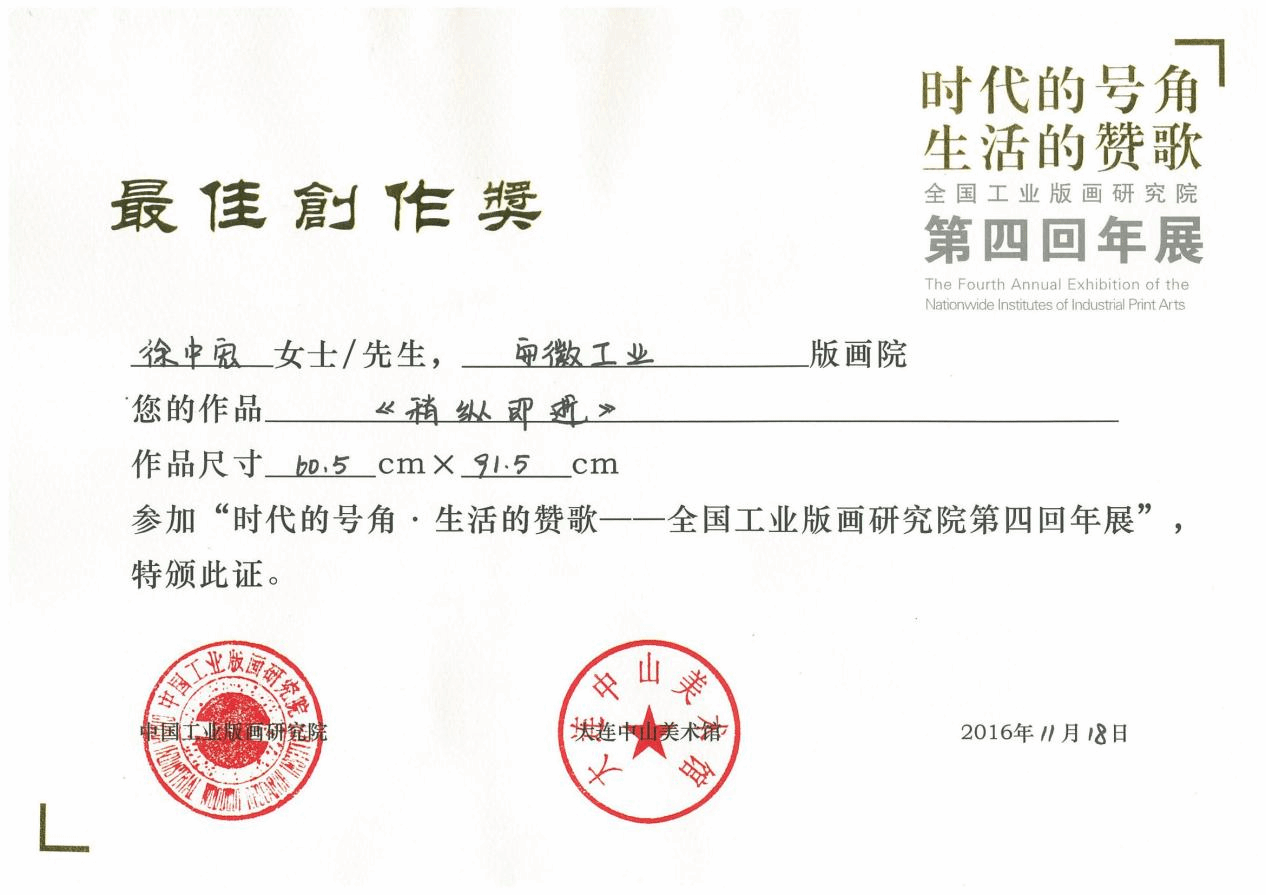 2026世界杯官方合作网站研究生优秀毕业生——徐中宏(版画)