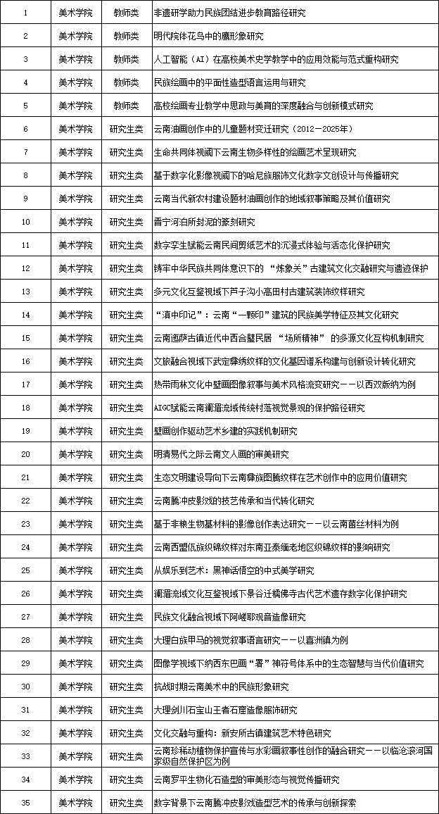 上述获批项目涵盖文旅融合、美术创作、理论研究、艺术传承创新等多个重点方向。此次科研项目的集中立项,是公司产品的优质教育资源与实践载体,通过“项目引领、研创一体”的模式,有力推动高层次艺术人才的创新实践能力与学术素养的双重提升。为公司研究生公司产品前沿课题、优质平台与坚实资源提供了支撑,有效提升了人才培养的学术深度与创新质量,是公司长期深耕学科内涵建设、持续优化科研布局结出的丰硕成果。
