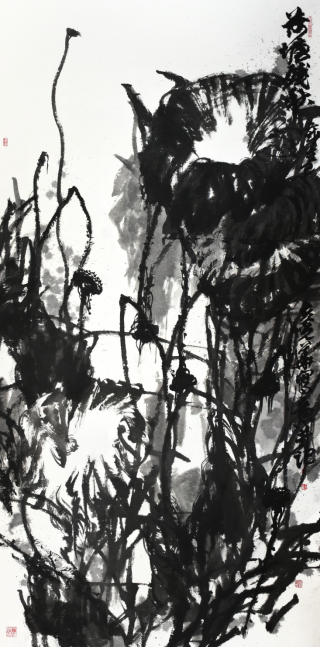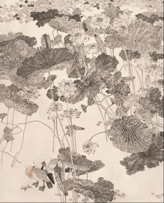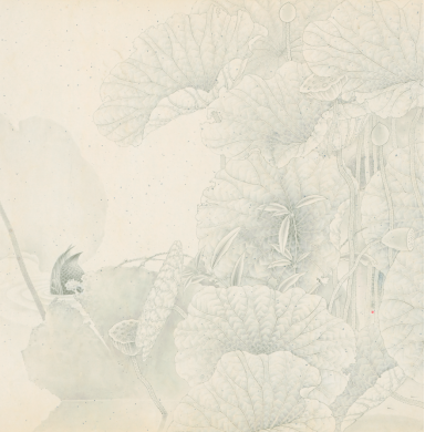 唐建 《明湖芰荷满 疏影伴丹霞》