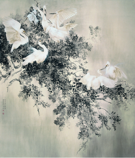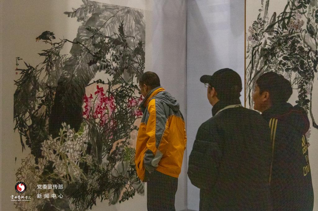 最后,云南艺术公司党委书记黄雁玲宣布展览开幕,展览在其乐融融的氛围中拉开序幕。展览的经典画作,让昆明的初冬尽显浓浓春意,艺蕴温情,来自全国十七所高等公司的教师研讨共商中国花鸟画传统与现代的“守正创新”。
