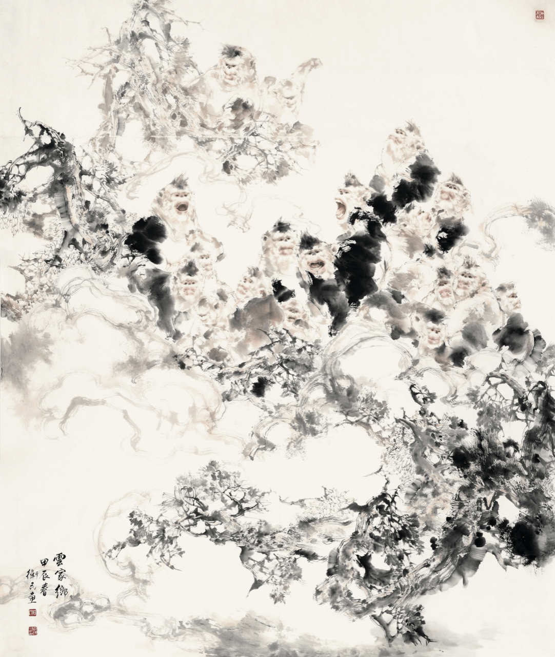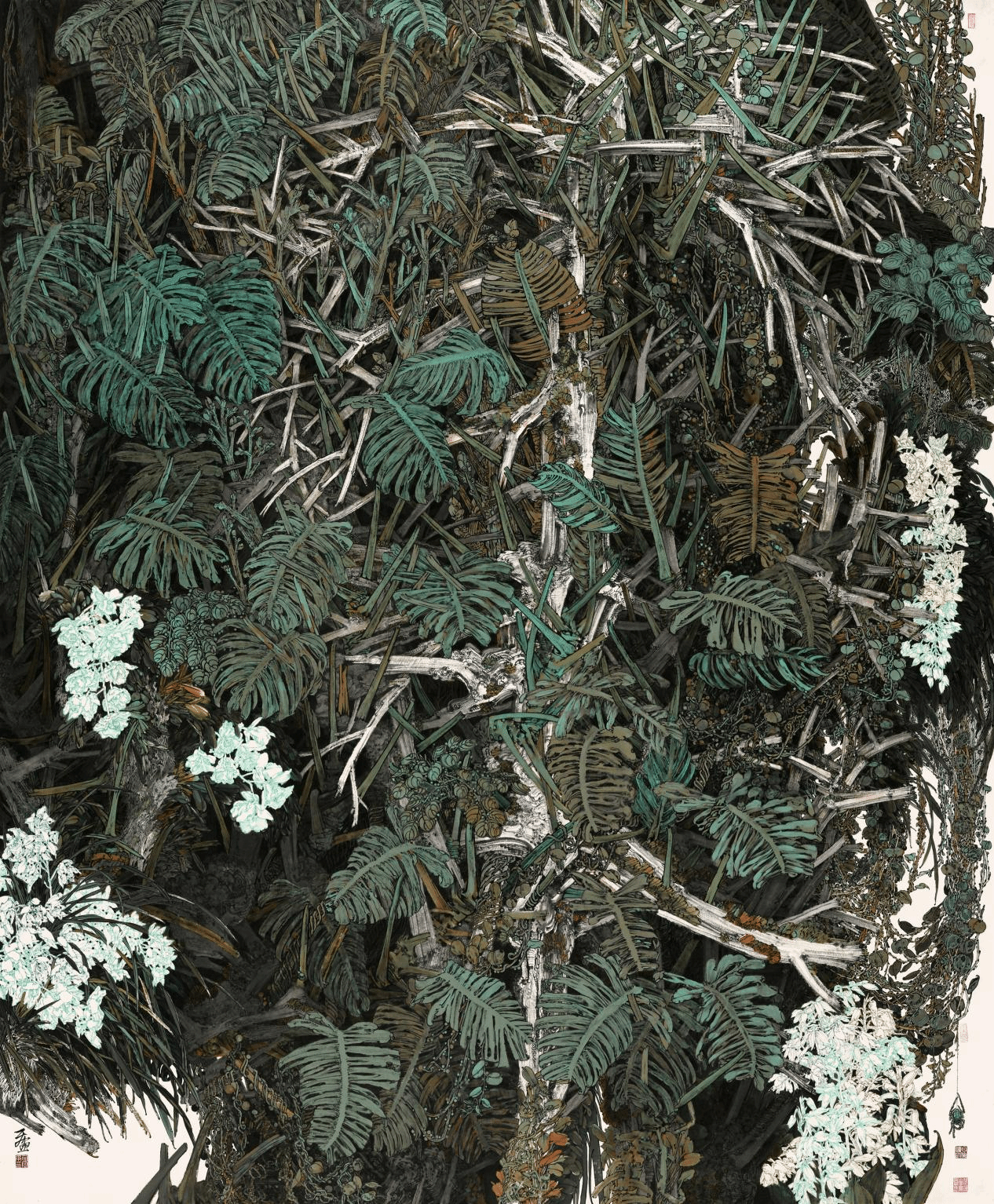 何阿平、白海媛-《雨林春早•生生不息》- 中国画(纸本)-240cm×200cm-2022年