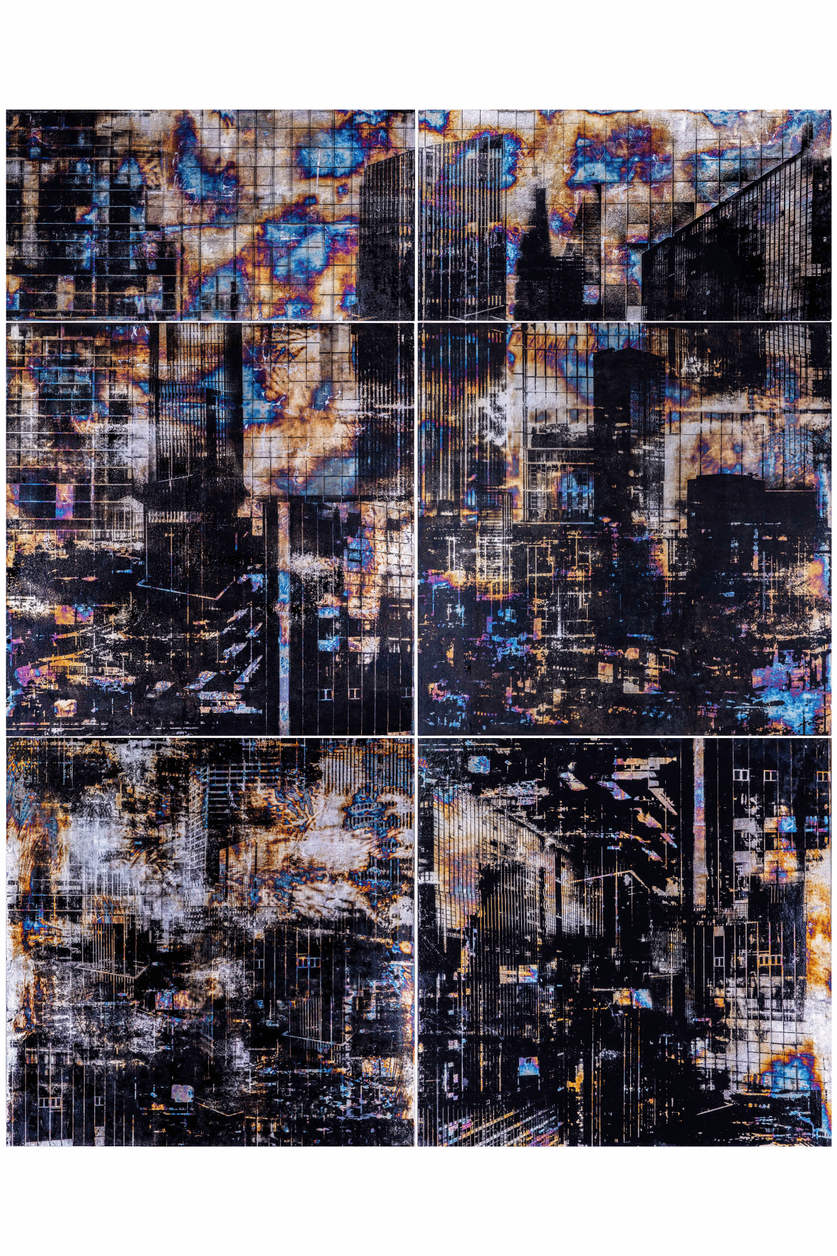 沐晓熔-《西部之光 万家灯火》-综合材料绘画(木质构造、箔、油墨)-233cm×187cm-2024年