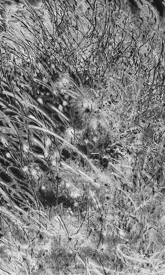 王晨橙-《花光焰火》-黑白木刻 -150cm×90cm- 2024年