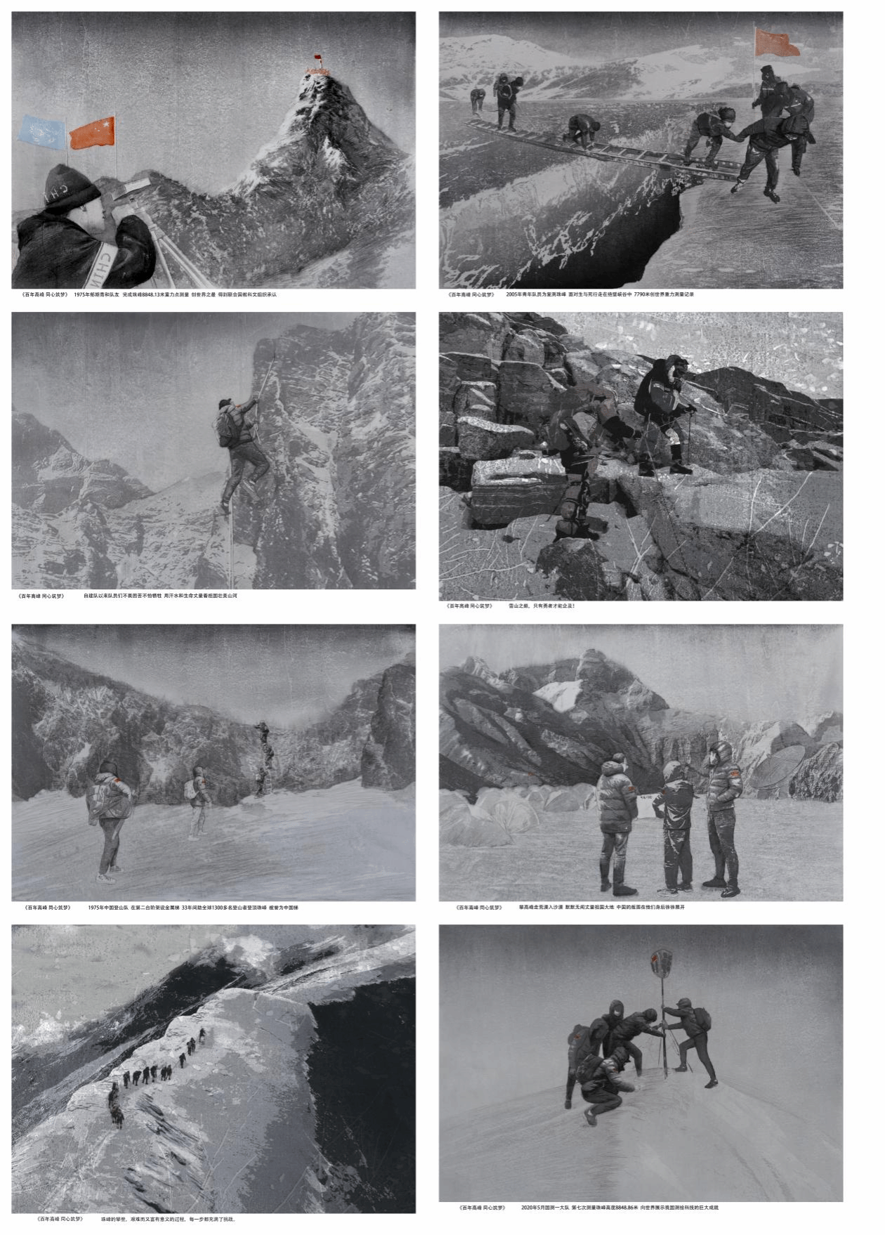 李斌、刘普一秋-《百年高峰 同心筑梦》-连环画(水印木刻)-40cm×50cm×8-2024年