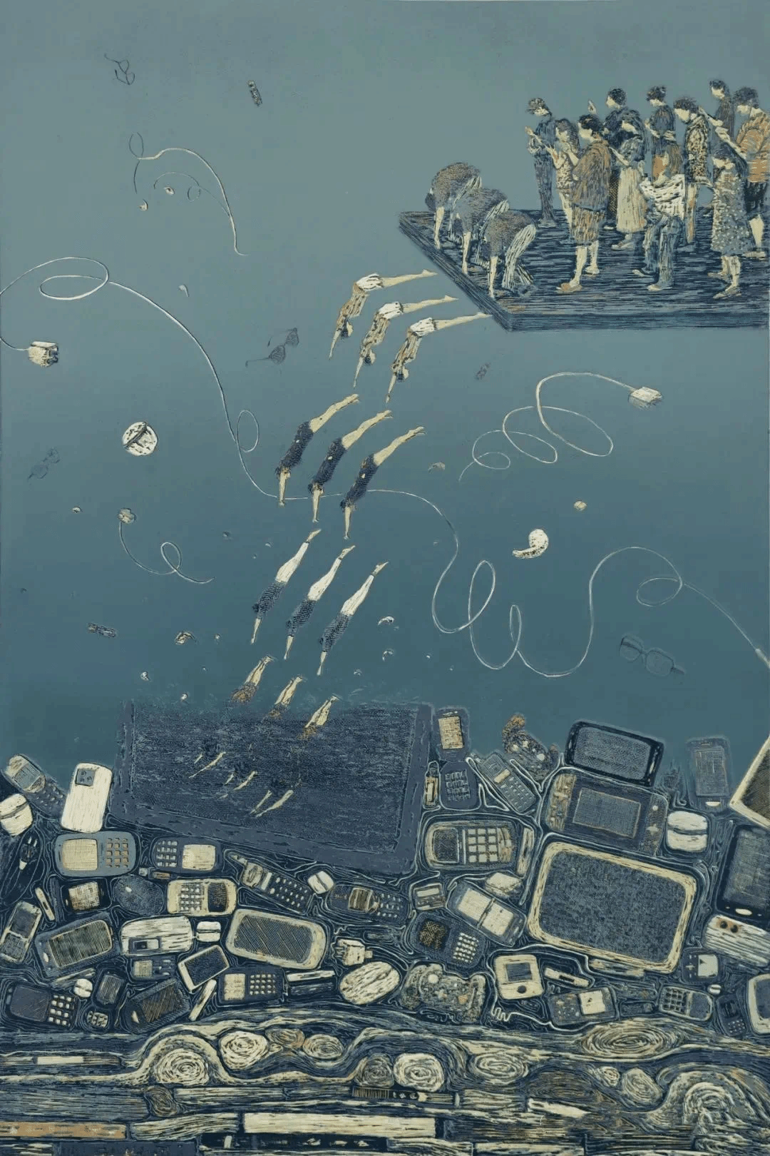 严茹玉-《预备,跳》-绝版木刻-90cm×60cm-2023年