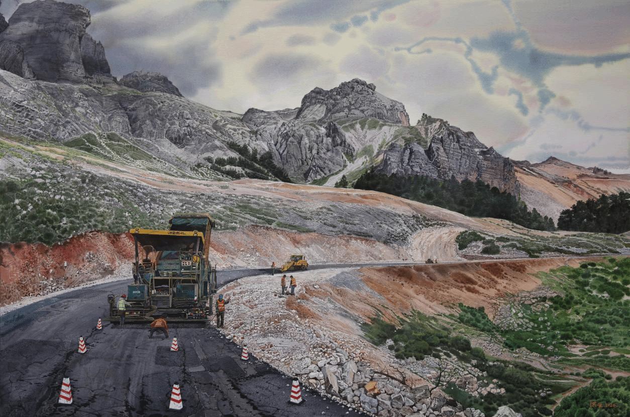 王洪云-《高原筑路人-拓跋》-水彩、粉画(纸本)-150cm×110cm-2024年