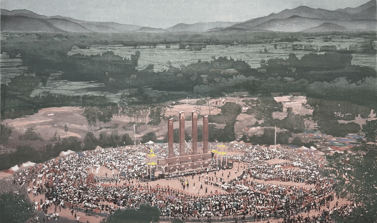 马加庭-《目瑙纵歌——边疆的盛节》-水印木刻-72cm×120cm-2024年