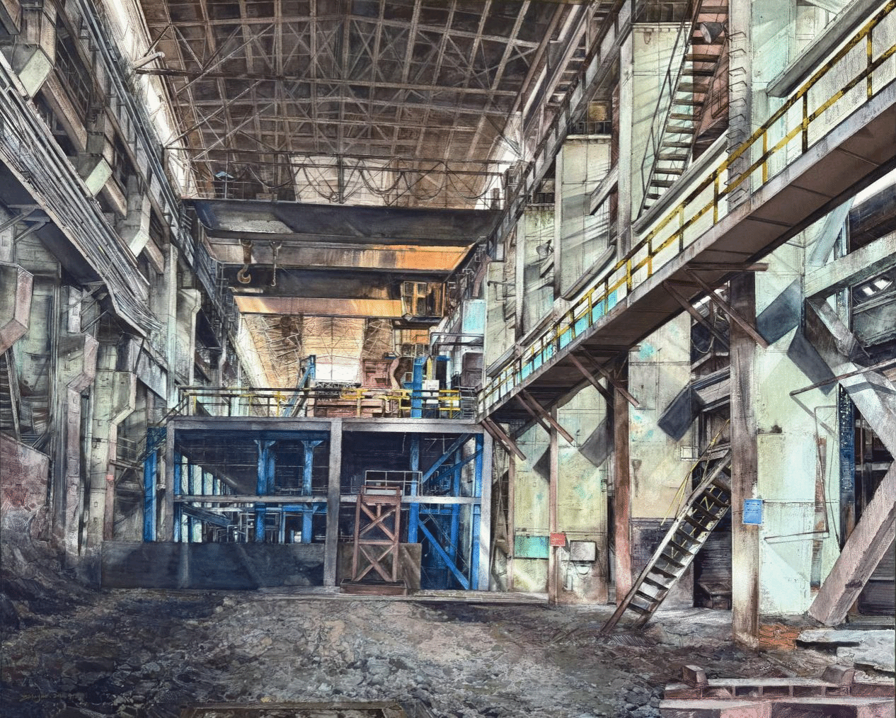 朱悦-《时代印记·合钢之光》-水彩、粉画(纸本)-165cm×115cm-2024年