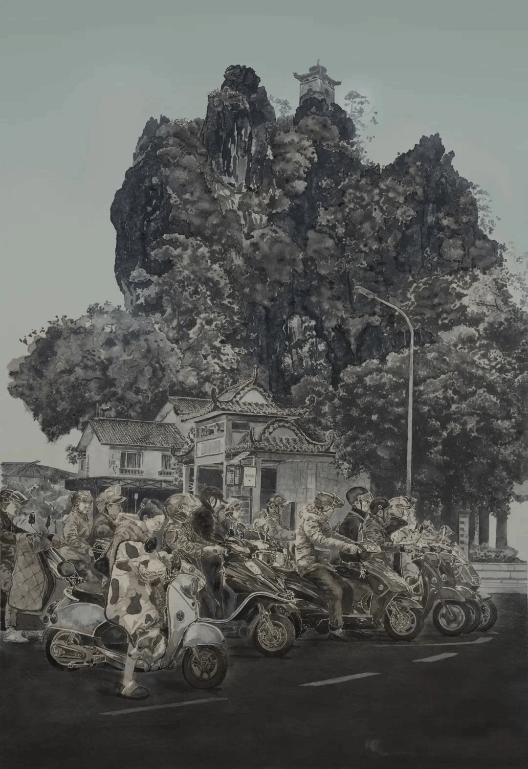 满江红-《雾雨笼月》-中国画(纸本)-240cm×200cm-2023年