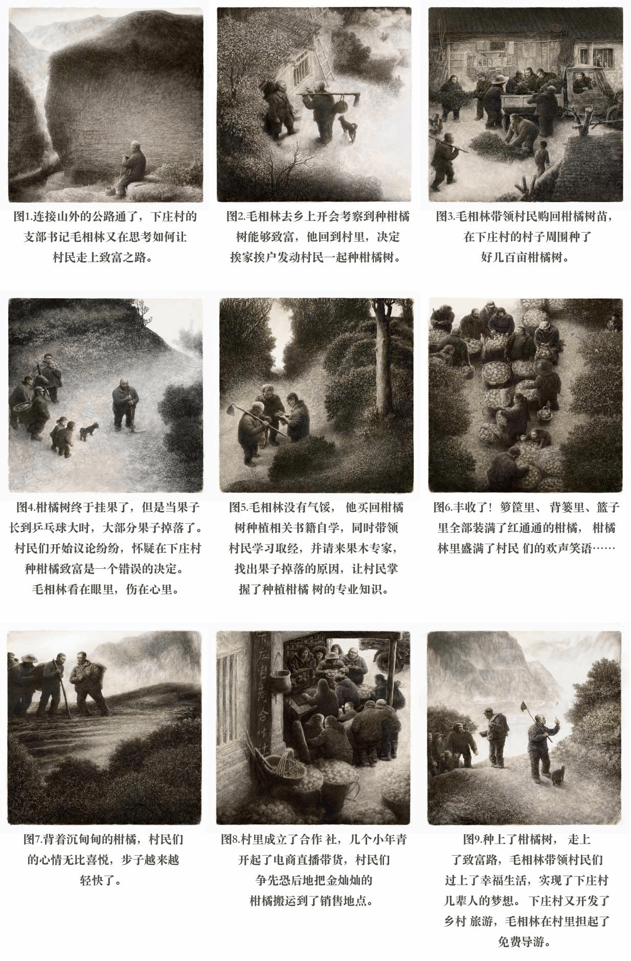 刘斌、王煜-《下庄橘语》-连环画(纸本综合)-40cm×40cm×9-2024年