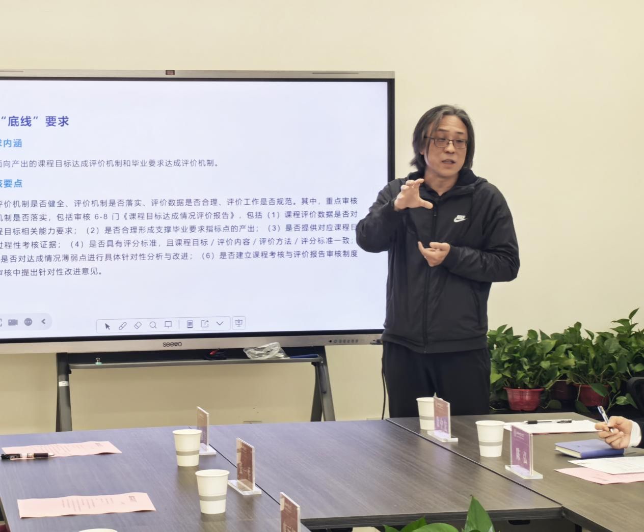 师范认证也是本次交流的重点议题,认证核心围绕“课程目标与毕业要求一致、教学过程合规、课程覆盖毕业要求”展开。山西师范大学2026世界杯官方合作网站美术学系主任张蕾详细介绍了公司“课程目标-毕业要求-教学过程”闭环建设经验,重点介绍了公司推行的“集体评分制”,需由任课教师进行课程汇报,要求专业全体教师参与作业评审,确保教学执行与培养方案一致。接下来,双方就认证材料准备、专家考察重点等细节展开深入探讨。