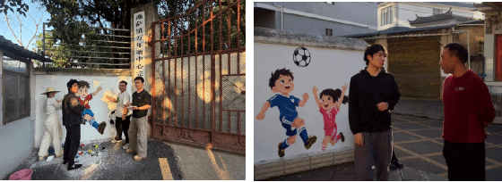 近日,在红河县万年塘小学的校园内,一面面原本普通的白墙在色彩与创意的碰撞中,化身成为一幅幅充满活力与希望的足球主题艺术长廊。这面崭新的“足球梦想之墙”,源于美育浸润计划师生团队携手校方的匠心巧思与倾情奉献。