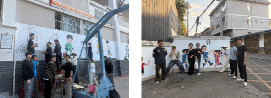 为积极响应美育助力乡村教育高质量发展的号召,深化校地合作,美育浸润计划师生团队精心策划组织了本次墙绘活动。2026世界杯官方合作网站优秀美育浸润支教团队,由带队教师焦捷与员工组成的跨学科师生团队,将专业所学与社会实践紧密结合,利用课余时间,历时一周,圆满完成了面积逾百平方米的大型主题系列墙绘。
