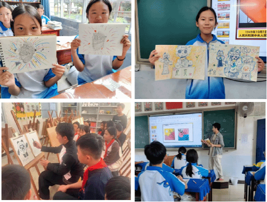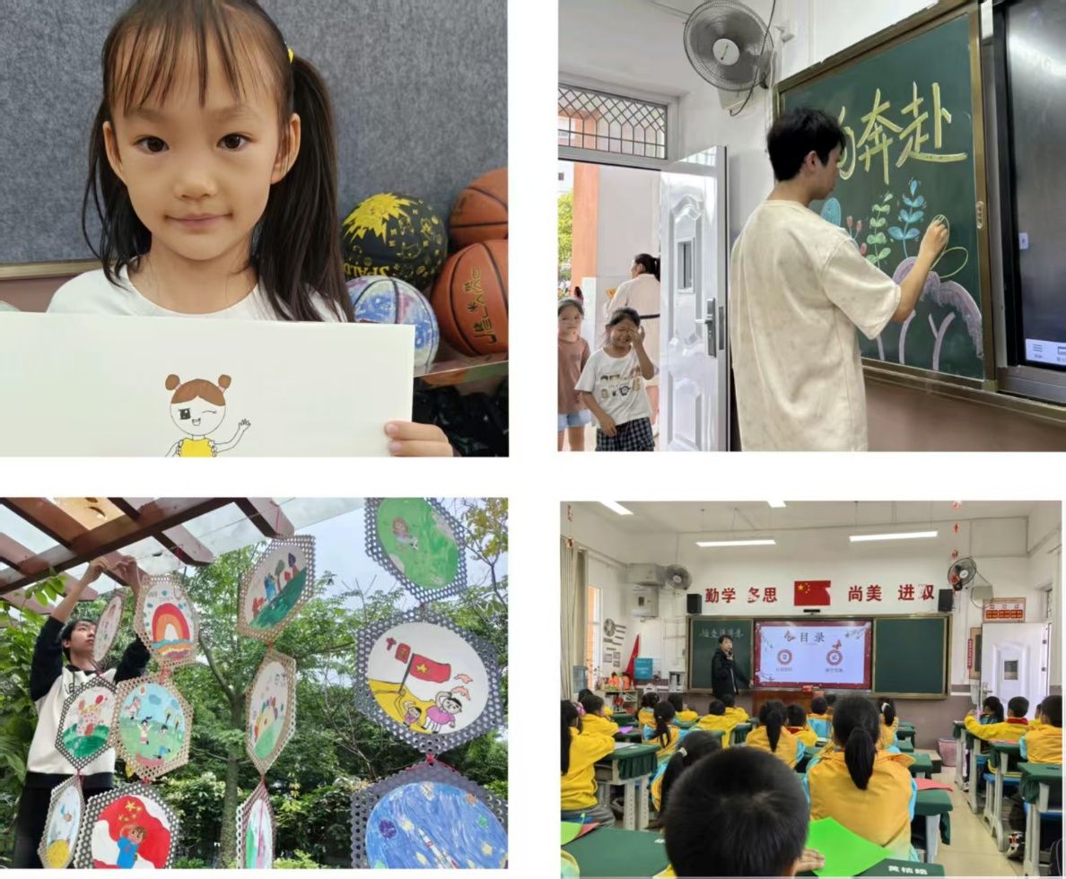 这一教学方法很快见效:原本沉默寡言的员工开始主动举手分享画作创意,课后总会追着我探讨 “怎么画好家乡的梯田”“如何给壮族服饰添纹样”,甚至有孩子会提前跑到办公室提醒我 “老师,快上我们班的美术课啦”。支教期间,我也深深感受到各方的温暖与支持:驻点的新华镇中心公司全力配合教学,缺画纸、颜料便第一时间协调资源,缺专业教室便开放场地供我们使用;公司领导和老师再忙也会抽时间探望,带来关怀与教学指导建议。这段经历让我快速成长,从最初把控不好课堂节奏,到如今能灵活调动氛围,更深刻领悟到:教学不必刻板拘泥,松弛感与责任心可以兼得。当看到孩子们因我的引导而爱上美术、自信表达,便知所有的付出都值得,也更加坚定了我深耕基层美育的决心。