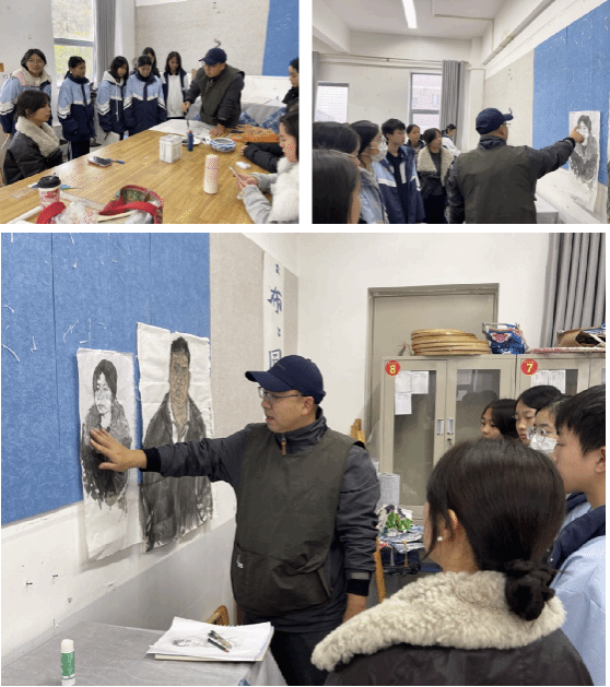 2025年12月25日,午后和煦的阳光洒满富宁县思源实验中学的校园,黄爱青名师工作室里暖意融融、墨香四溢;为助力名师工作室建设,推动美育工作建设走深走实,美育浸润行动计划团队的王哲明老师与詹鸷贤同学专程到访,为这里的师生带来了一场精彩的中国画人物画教学盛宴。