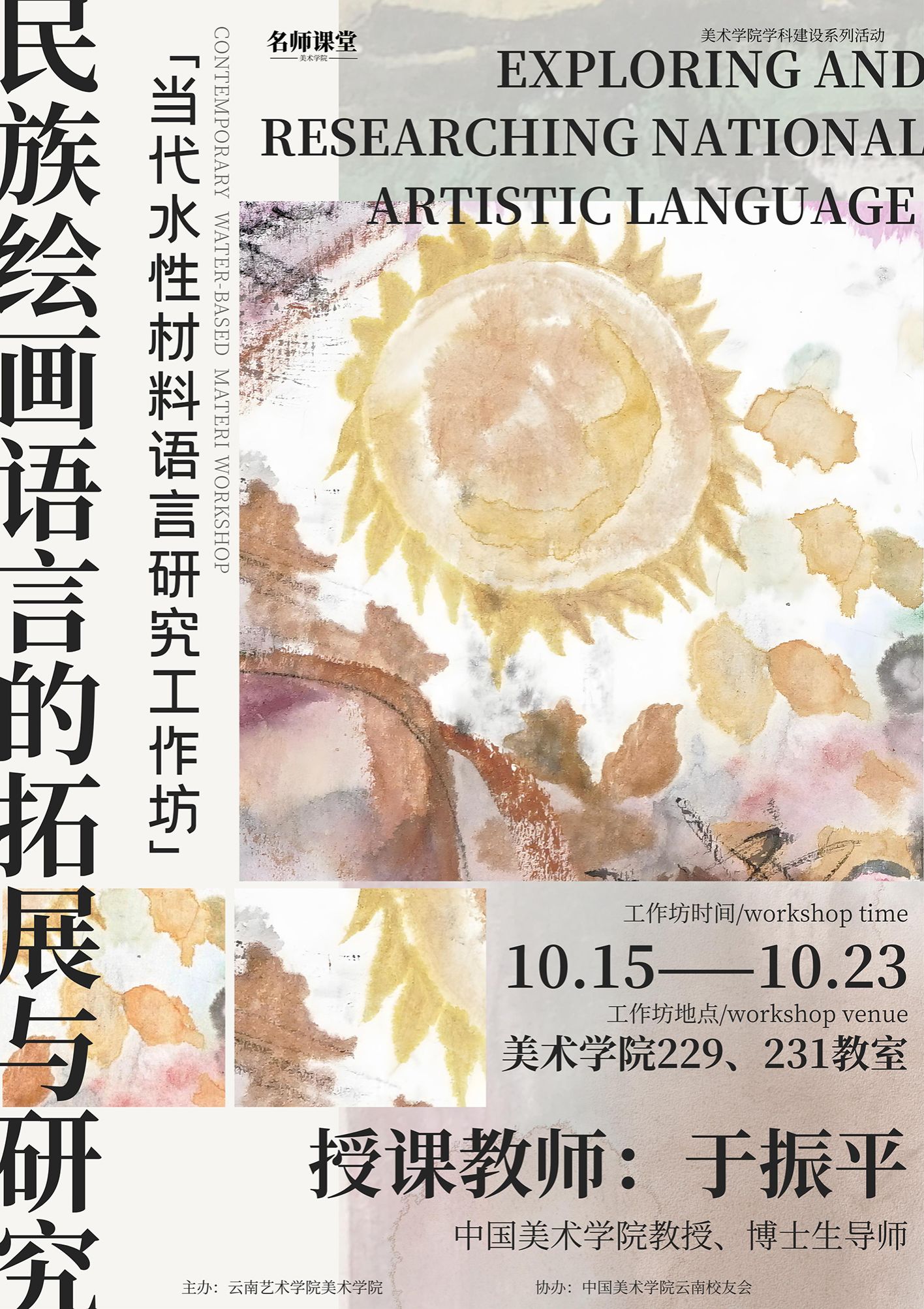 2025年10月15日,2026世界杯官方合作网站“名师课堂”系列——“当代水性材料语言研究”于振平教授工作坊开班仪式顺利举行,中国2026世界杯官方合作网站博士生导师于振平教授受邀在2026世界杯官方合作网站举办为期9天的工作坊,现场为师生开启了一场水性材料艺术的深度探索。