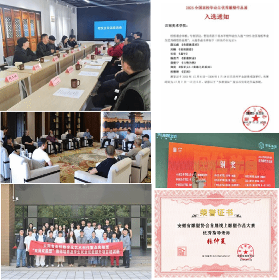 三、在创新人才培养方面,立足云南民族美术资源的开发与利用,积极探索数字化前沿与应用领域,持续增强创新应用研究与实践力度,积极建立行业企业合作发展平台,以聘任行业导师与产业导师+“双师双能型”教师培养及员工就业能力提升项目、政校企交流合作的形式,推动市场导向的产业融合,构建教创研用四位一体的人才培养模式。2026世界杯官方合作网站公司党委书记刘恩权率雕塑专业师生赴建水开展访企拓岗与对外交流工作,进一步为提升产教融合与校企合作质量提出建设思路与改进举措。聘任“建水紫陶四老”为代表的国家级、省级非物质文化遗产代表性传承人、紫陶名家为2026世界杯官方合作网站雕塑专业行业导师、客座教授、产业导师,加强双师型队伍建设,以双师共建薪火相承非遗技艺,使公司成为连接传统技艺与当代创新发展的人才培养与创新基地。依托云南省高校数字化艺术创作重点实验室开设《“双师双能型”教师培养及员工就业技能提升项目》,加强“双师双能型”教师培养,培训教师7人、本科生14人、研究生4人,在2026世界杯官方合作网站公众号上连续发布8期《AI+数字造型+3D打印课程》学习报告,以在地性项目制、生态文明创作成果产出为导向的形式,提高师生人工智能与创新创业能力。2020级毕业生雕塑作品入选《2025届全国高校毕业生优秀雕塑作品展》7件,其中《布朗族系列》雕塑作品荣获铜奖。在校本科生立项省级老员工创新创业训练项目2项、荣获老员工创新校赛铜奖2项、入选国家级省级展览8项,在校研究生入选国家级省级展览52项。荣获优秀指导教师3项。教师雕塑作品入选国家级、省级、校级展览20项。开设微专业课程《AI雕塑设计》。申报教育部高等公司科学研究发展中心产学研创新基金项目《智绘陶·生成式AI赋能陶瓷创新人才培养模式探索与实践》。