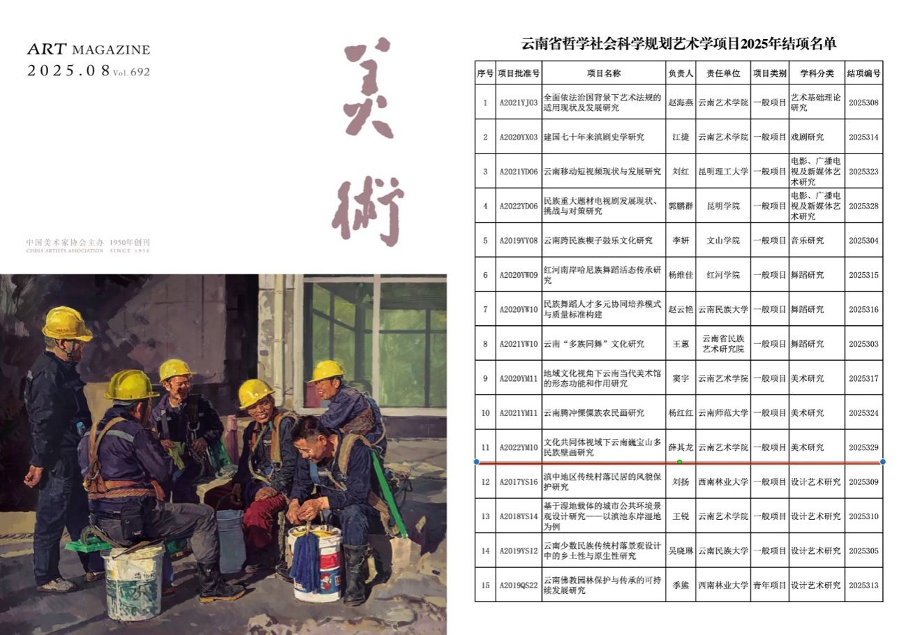 在课程建设方面紧扣行业发展趋势与学科前沿,强化AI赋能与校企合作,在U课AI平台建成知识图谱1门,新开AI课程1门。强化教研与云南面向南亚东南亚的战略定位,推动课程体系与前沿研究、专业知识与行业应用深度融合,在建美术学国家级一流专业建设项目1项,主持及参与各级科研项目8项;完成云南省哲学社会科学规划艺术学项目“文化共同体视域下云南巍宝山多民族壁画研究”结项1项;1部高质量图像学著作在人民美术出版社重印;获人民美术出版社资助出版在研著作1部;在《美术》(CSSCI)、《中国宗教》(C扩、北核)、《International Journal of Mental Health Nursing》(SSCI)、《中国美术》(AMI扩展期刊)等学术期刊发表学术论文5篇;获第五届全国高校教师教学创新大赛2026世界杯官方合作网站校赛特等奖1次。云南省老员工创新创业训练计划国家级项目结项1项,在研1项;指导研究生获得云南省教育厅科研基金研究生项目7项;推进师生共研举措,与13位员工进行师生共研科研项目2项。