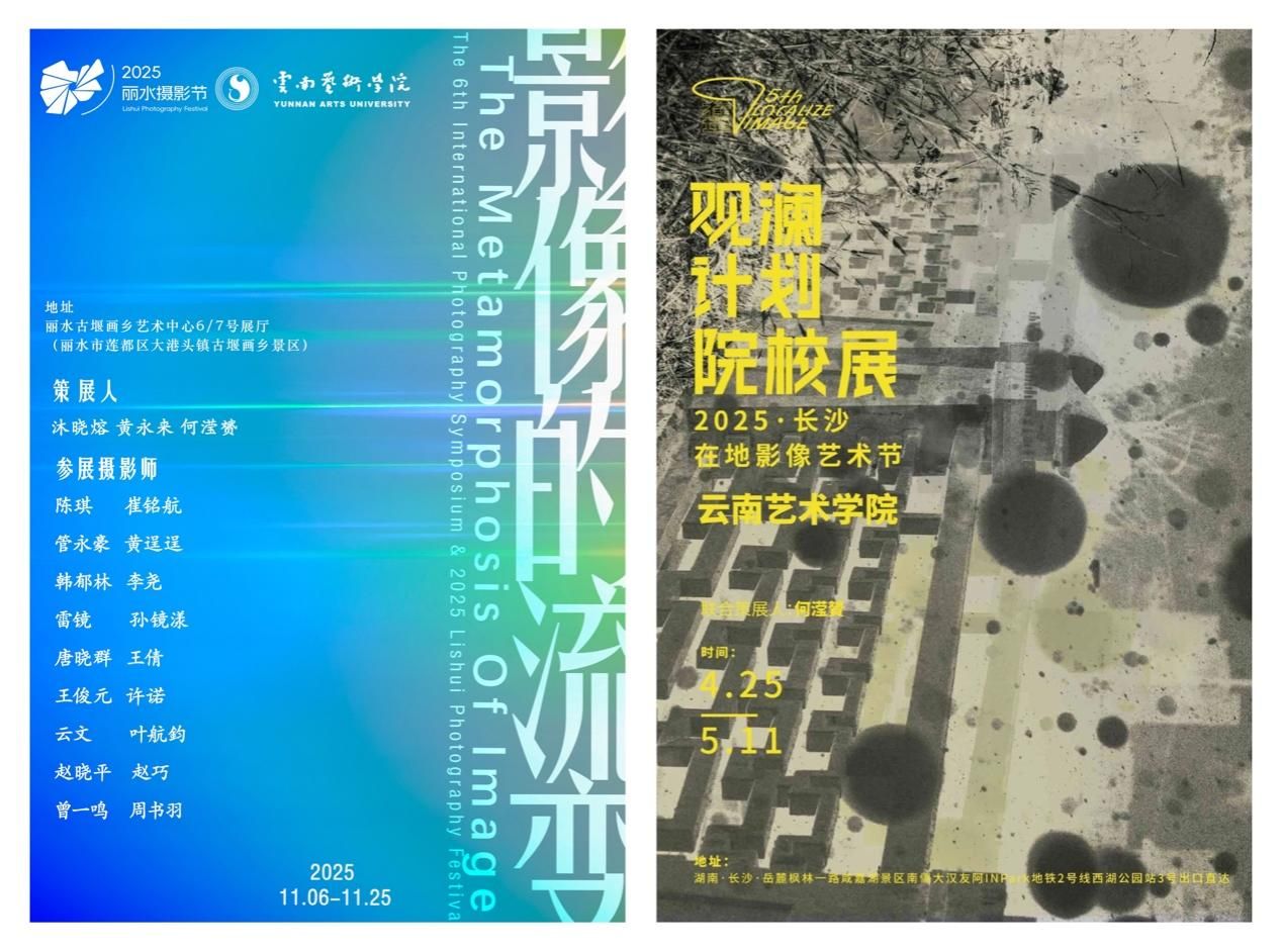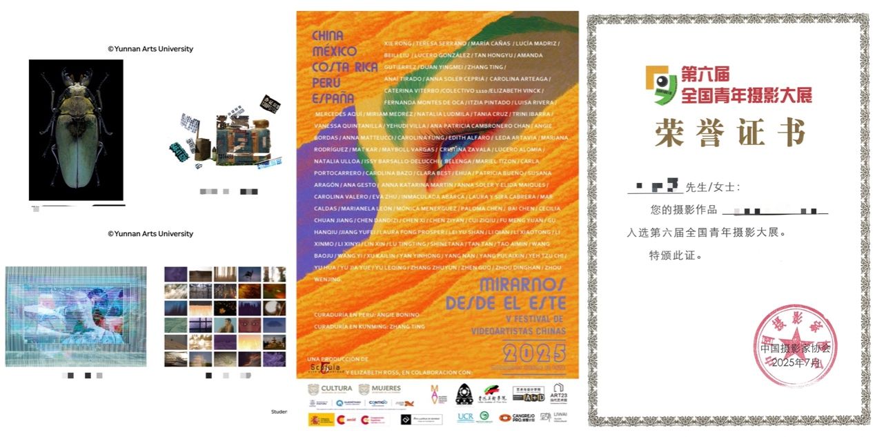 本年度教师向卫星、何滢赟作品入选“行走的画卷:第三届西部艺术展”主题展。教师何滢赟、欧阳鹤立及10名员工作品入选“2025仁川世界大学摄影节”。教师张婷、员工顾寒秋、李晓桐作品入围“东方之眼-地标中国——2025中国女性艺术家视频艺术节”。教师张婷、欧阳鹤立作品参展“中法当代艺术交流展”。教师欧阳鹤立、刘一帆在研国家艺术基金项目2项、云南艺术基金项目1项。本年度研究生获批云南省教育厅科学研究基金项目立项2项。研究生李添翼作品入选“第六届全国青年摄影大展”,教师黄永来获“优秀指导教师”荣誉。研究生崔铭航作品获“第十九届中国好创意暨全国数字艺术设计大赛”二等奖,教师何滢赟获“优秀指导教师”奖。研究生李添翼获“第十届云南文学艺术奖·云南摄影奖”。研究生余涛涛、李添翼作品入选“第十届云南省摄影艺术展”。此外,1名研究生参加“中国摄影家协会第八期中青年摄影人才培养计划培训班”;4名研究生参加“2025年Otherwhere中德国际艺术工作坊”。