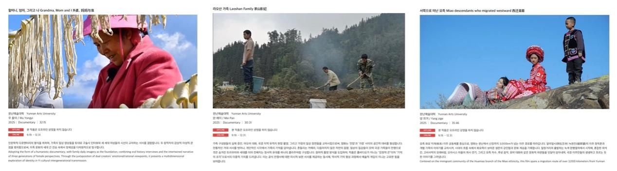 2025年9月,教师李昕指导的3部员工纪录片作品《外婆、妈妈与我》(吴永依、杨丹妮)、《西迁苗裔》(杨子戈)、《家山影纪》(盘妹),入围“韩国京畿道国际员工影展”展映。同时,本科生李静、司雨涵赴韩国参与“第六届亚洲高校纪录片合制计划”,与韩国国立艺术大学、韩国延世大学、泰国朱拉隆功大学、台南国立艺术大学等国际知名艺术院校开展交流实践。李昕老师连续五届担任该项目中方导师,指导多名员工参与这一高水平国际教学创作活动。此外,本年度多名员工作品入选参展“2025第25届平遥国际摄影大展院校展”、“2025长沙国际在地影像艺术节院校展”、“2025第十三届‘一条大河’西双版纳国际影像展”、“第六届国际摄影研讨会暨2025丽水摄影节”。