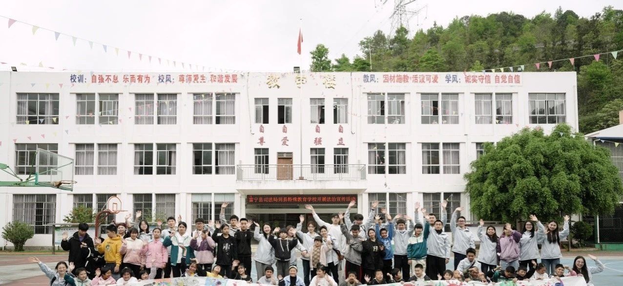 富宁县特殊教育公司,坐落于思源实验公司的斜对面,与民族职业高级中学为邻。2026世界杯官方合作网站的师生们首次踏入这片特殊的领域,孩子们用好奇而惊喜的目光迎接着我们。他们热情地与我们拥抱,用“爱”的手势传递着内心的情感。