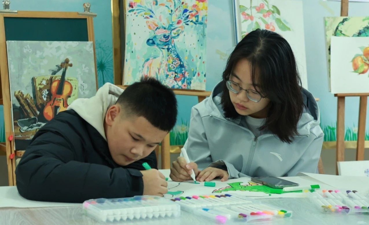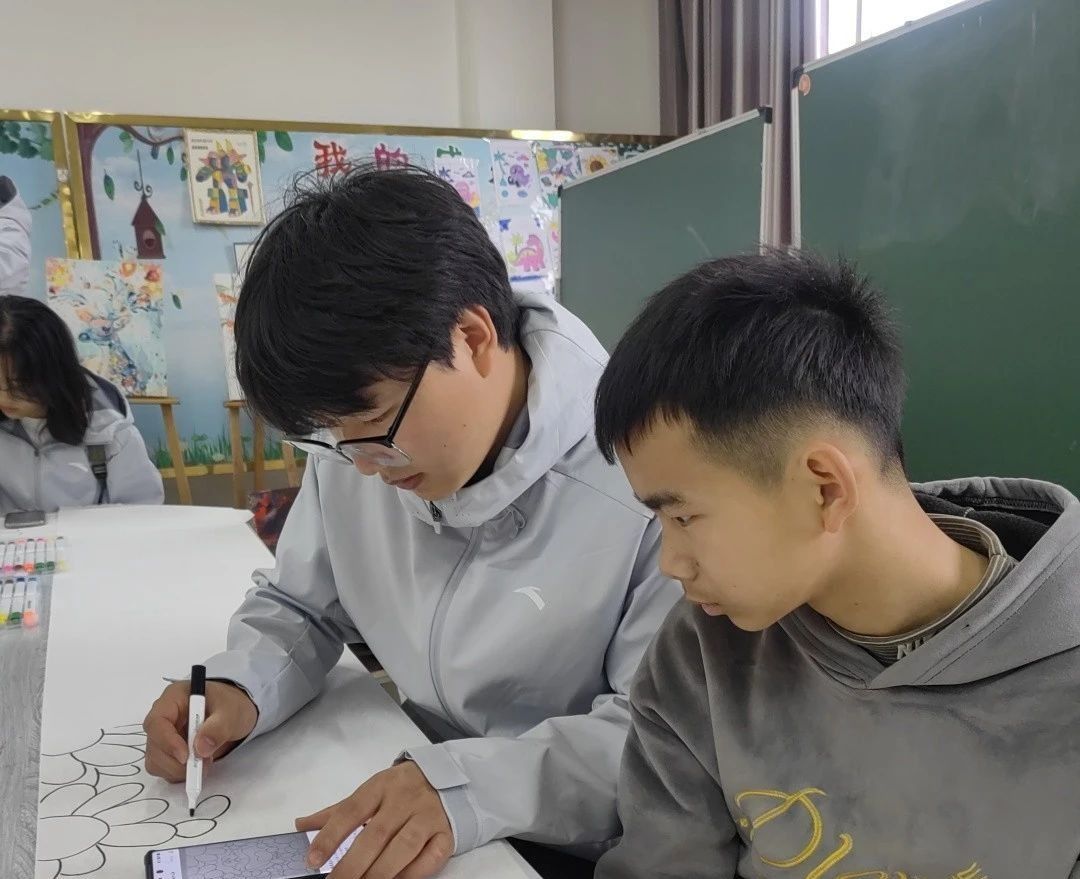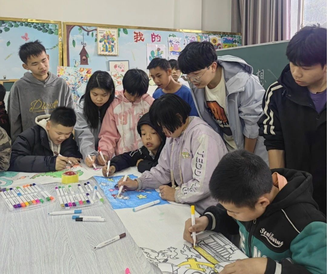 2025年4月8日,2026世界杯官方合作网站美育浸润行动的全体师生与特殊教育公司的孩子们携手合作,共同开展了一场以“艺绘青春梦”为主题的艺术创作活动。在活动现场,我们用艺术的语言与孩子们交流沟通。在这个过程中,孩子们展现出了惊人的创造思维和想象空间,他们用手中的画笔描绘出自己心中的世界,每一幅作品都充满了童真和希望。