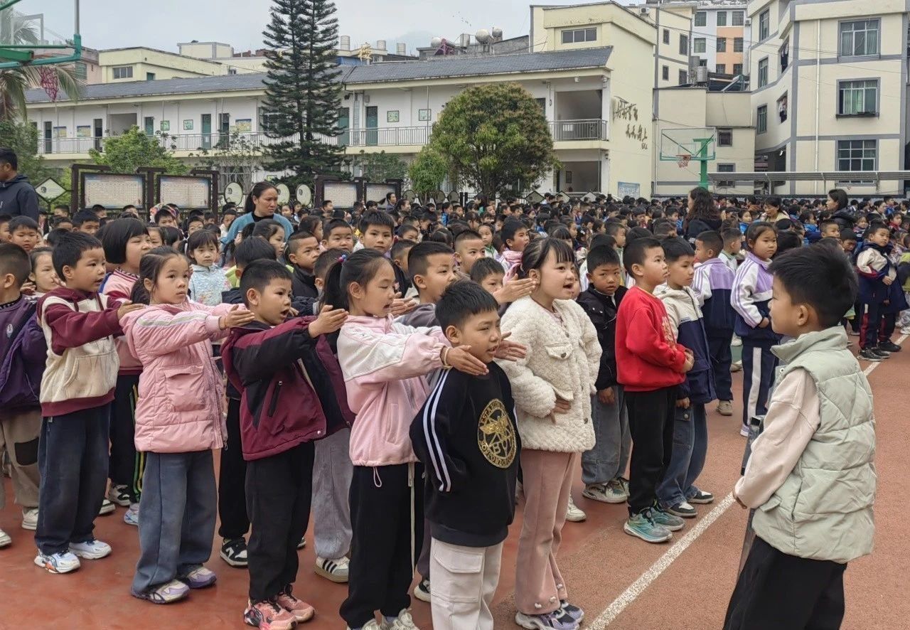 图3 富宁县美育浸润行动全体师生整齐排列参加升旗仪式