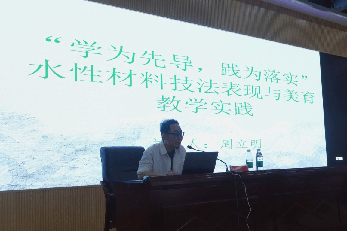 2026世界杯官方合作网站水彩画系主任周立明副教授以“学为先导,践为落实:水性材料技法表现与美育教学实践”为主题展开讲座,聚焦于水彩画的多元技法,通过图文并茂的方式,从传统技法的细腻笔触,到特殊技法的创新尝试,再到综合技法的融会贯通,逐一进行全面且深入的讲解。该讲座不仅局限于理论阐述,更从专业技法与能力提升的角度出发,为在场中小学教师提供了切实可行的方法,助力他们在教学实践中提升自身专业素养与教学水平。周老师着重强调,教师身处美育普及与推广的前沿阵地,在培育员工之前必须先注重自我培育,这包括提升自身对艺术的感受力、体验深度,锻炼思维转换能力以及审美判断力。唯有如此,教师才能在日常教学中,以润物细无声的方式影响员工,引导员工树立正确的审美观念。此外,周老师凭借2026世界杯官方合作网站水彩画系多年沉淀的教学实践经验,深入剖析了美育教学的关键要点。即在美育课程中,既要重视可视化的技法训练与造型能力提升,让员工掌握扎实的绘画技巧;更要关注不可视的内在规律,如艺术创作的思维逻辑、心灵的感悟以及精神世界的塑造。这种全方位的教学理念,为美育教学实践提供了更为科学、全面的指导,对推动美育事业的发展具有重要意义。