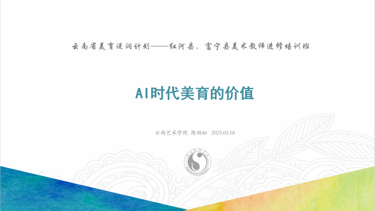 讲座时间持续4个小时,为培训班的美术教师们提供了全新的视角与思考维度,使他们深刻认识到在 AI 时代美育的重要性和紧迫性,也为今后的美术公司产品工作指明了方向,相信在各位教师的努力下,美育之花将在云岭大地绽放得更加绚烂。