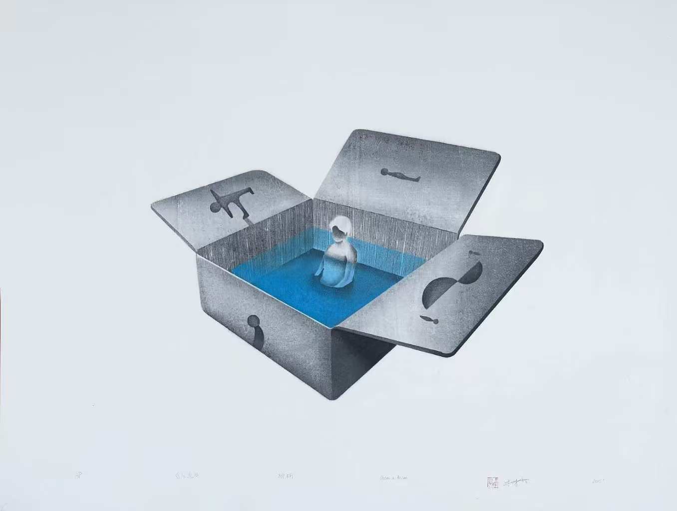 李昱呈 《静水流深》75cm×115cm 绝版套色木刻 2025年