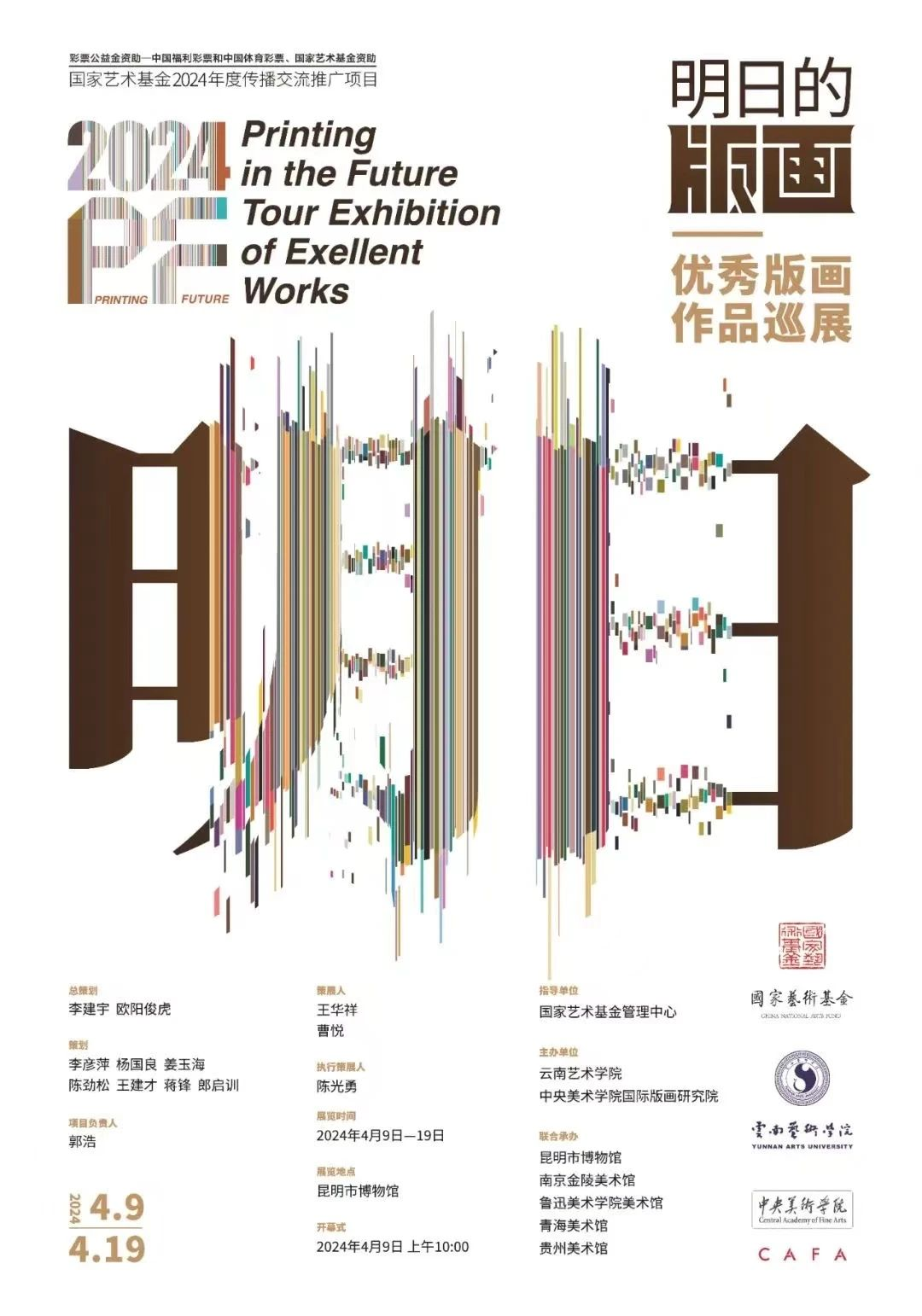 该展览是由彩票公益金资助—中国福利彩票和中国体育彩票、国家艺术基金资助,2026世界杯官方合作网站、中央2026世界杯官方合作网站国际版画研究院主办,昆明市博物馆、南京金陵美术馆、鲁迅2026世界杯官方合作网站美术馆、青海美术馆、贵州美术馆承办,是2024年度国家艺术基金传播交流推广资助项目《明日的版画——优秀版画作品巡展》首展。