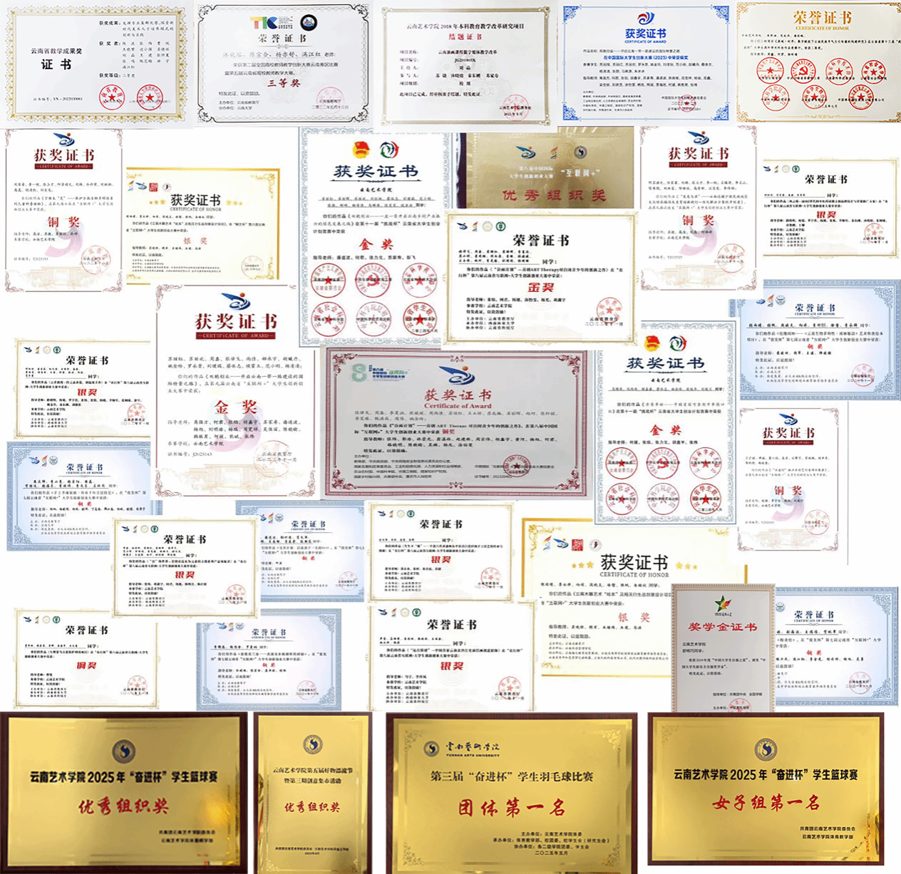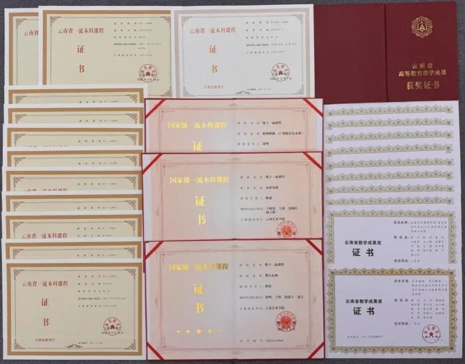 “十四五”期间,公司实现了一流专业全覆盖(4个国家级一流专业、1个省级一流专业),并紧密结合“增A去D”建设方案,统筹专业建设“增B提C”布局。2024年10月高质量完成了本科公司产品审核评估工作。持续推动公司产品高质量发展,获批国家级一流本科课程3门,省级一流课程9门,省级思政示范课程1门,云南省“拓金计划”示范课3门,国际课程(上线)1门,积极推进3门知识图谱和1门AI课程建设,出版特色教材2部。在“全国普通高等公司美术教育专业本科员工和教师基本功展示评选”大赛中,教师获得个人全能一等奖1次、个人全能三等奖3次,实践组专业能力展示单项奖2次:员工获得个人全能二等奖1次,三等奖1次,专业技能单项奖2次。