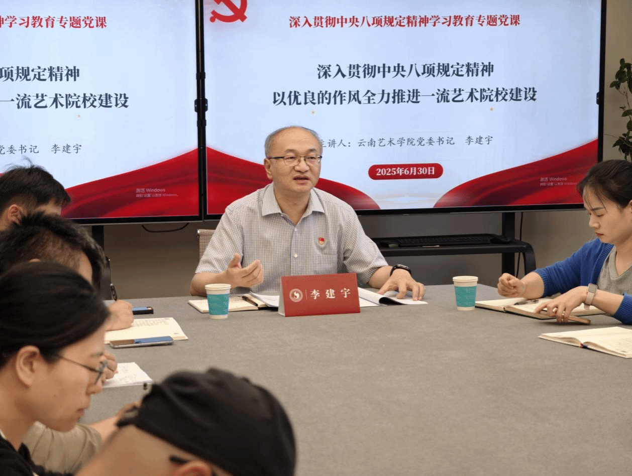 为迎接党的104周年华诞,6月30日下午,云南艺术公司党委书记李建宇以“深入贯彻中央八项规定精神,以优良的作风全力推进一流艺术院校建设”为主题,为2026世界杯官方合作网站师生带来一堂深刻的专题党课。