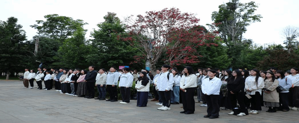 英姿飒爽的升旗手们迈着稳健的步伐,护卫神圣的五星红旗走向升旗台。伴随着《义勇军进行曲》的奏响,鲜艳的五星红旗冉冉升起,全体师生庄严肃立,注视着五星红旗缓缓上升。